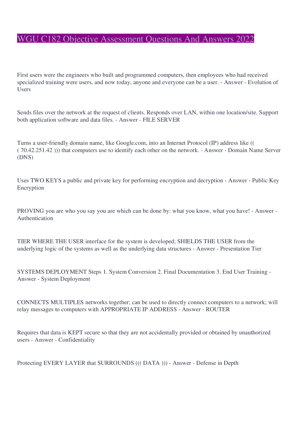 Information Technology > EXAMs > WGU C182 Objective Assessment Questions And Answers 2022 (All)