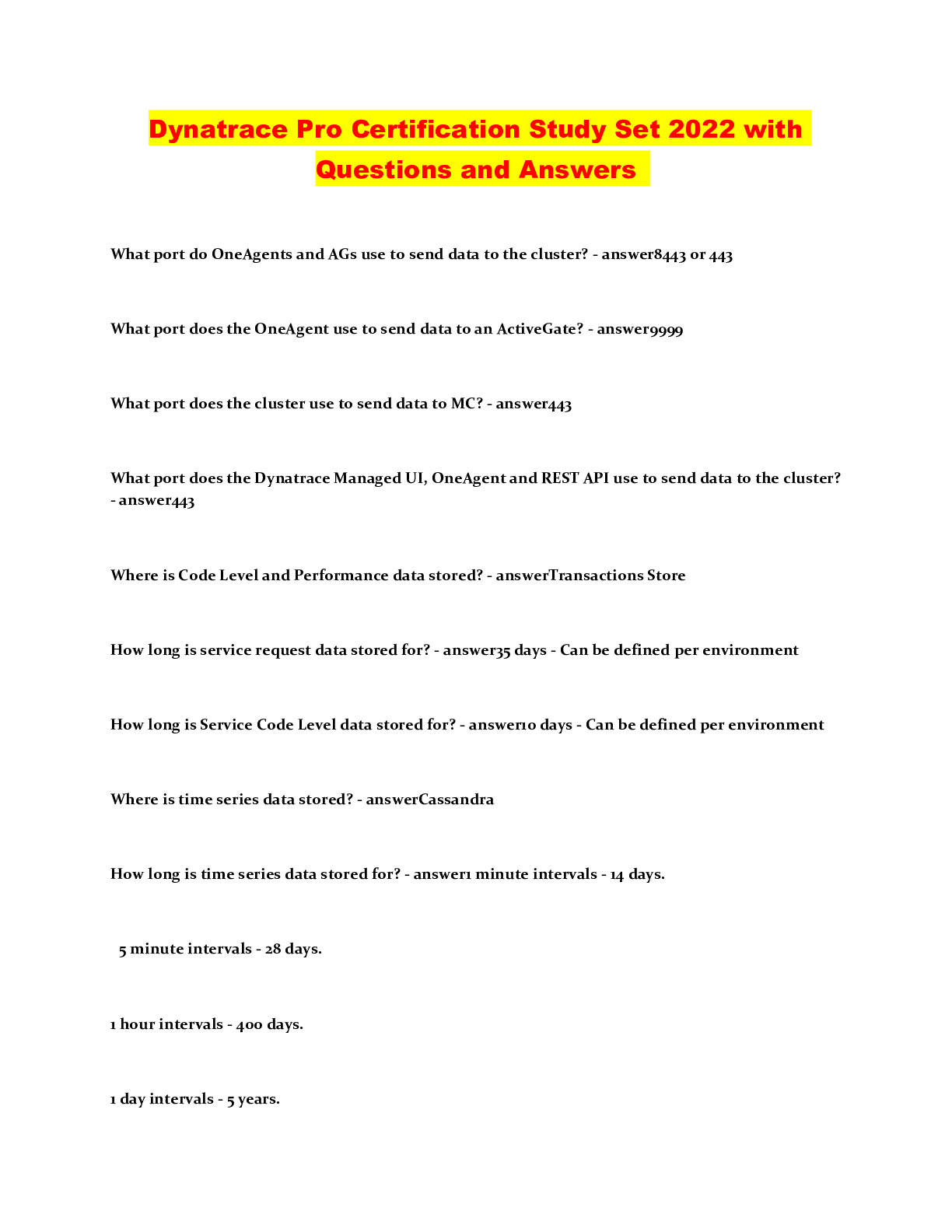 Information Technology > QUESTIONS & ANSWERS > Dynatrace Pro Certification Study Set 2022 with Questions and Answers (All)