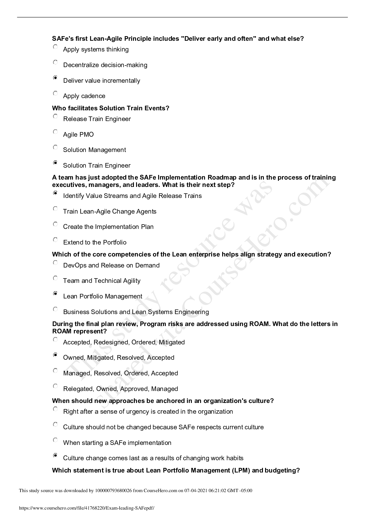 Material Science > QUESTIONS & ANSWERS > European University at Saint Petersburg MATH 101 Exam leading SAFe. (All)