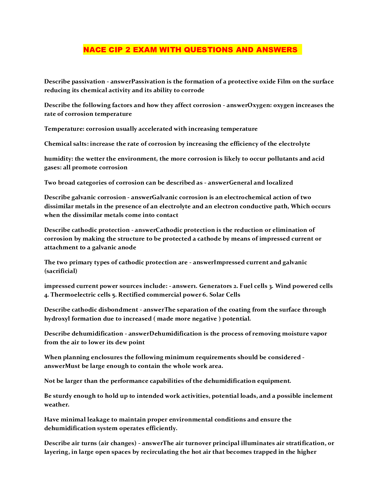 Material Science > QUESTIONS & ANSWERS > NACE CIP 1 CBT EXAM PRACTICE QUESTIONS AND ANSWERS (All)