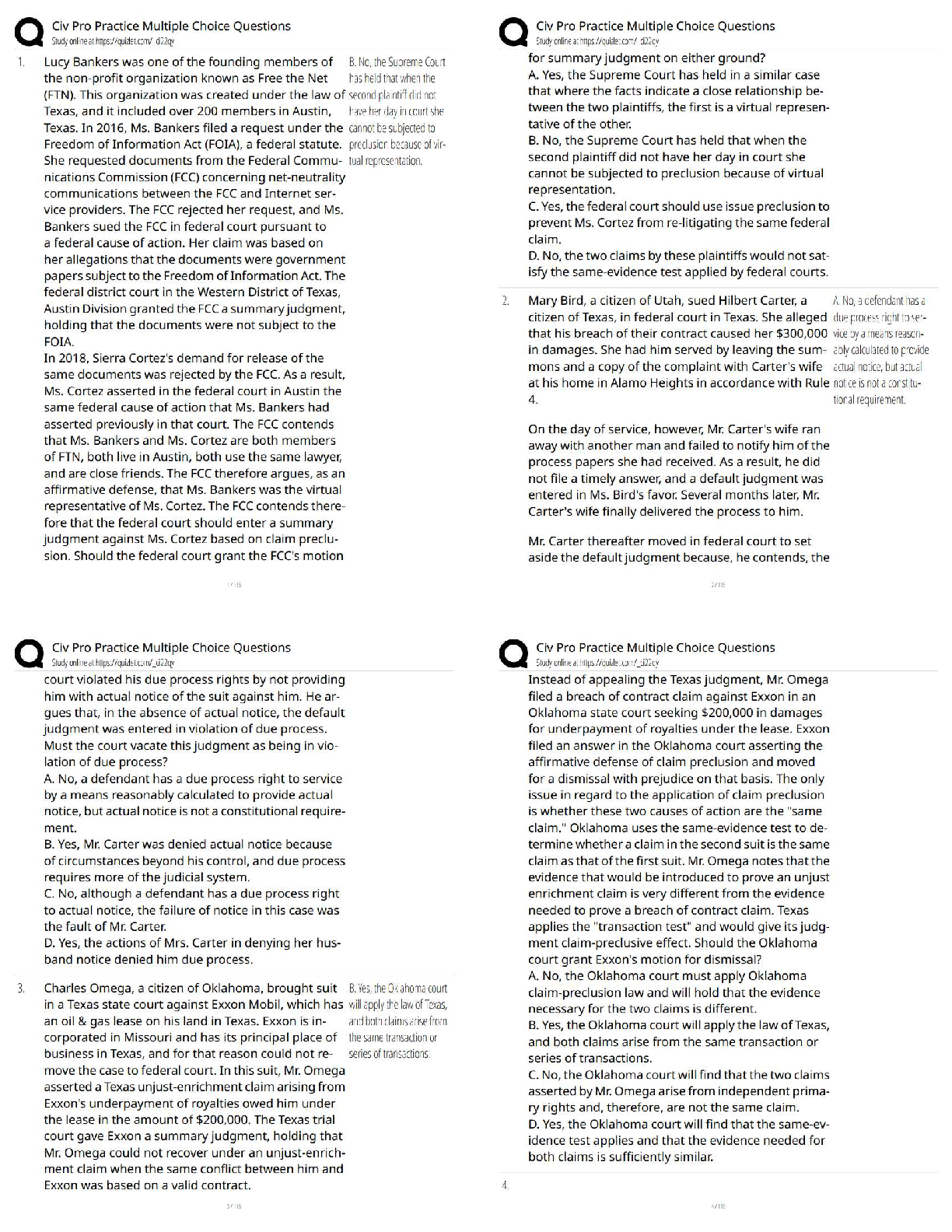 Labour Law > QUESTIONS & ANSWERS > Civ Pro Practice Multiple Choice Questions / 2025 Update / Score 100% / Full Exam Prep & Test Bank (All)