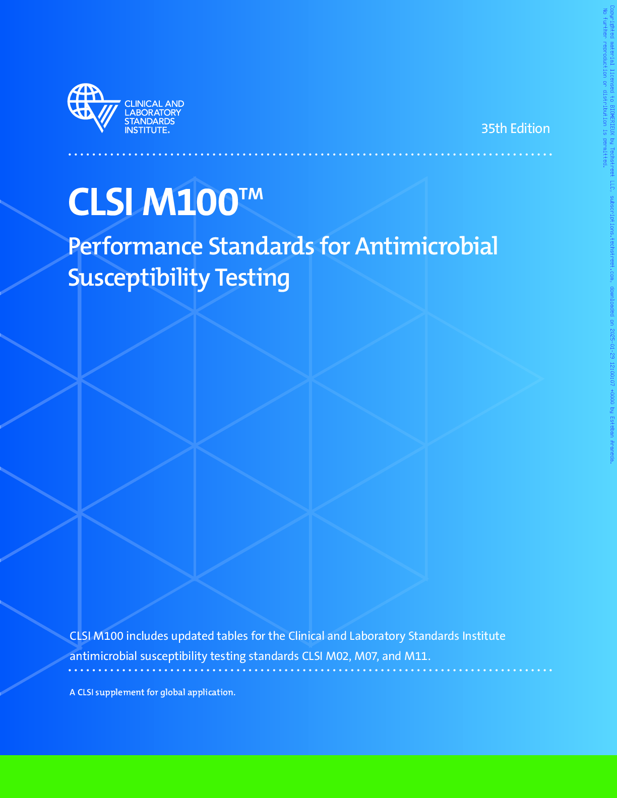 Micro Biology > Manual > CLSI M100 Performance Standards for Antimicrobial Susceptibility Testing 35th edition. (All)