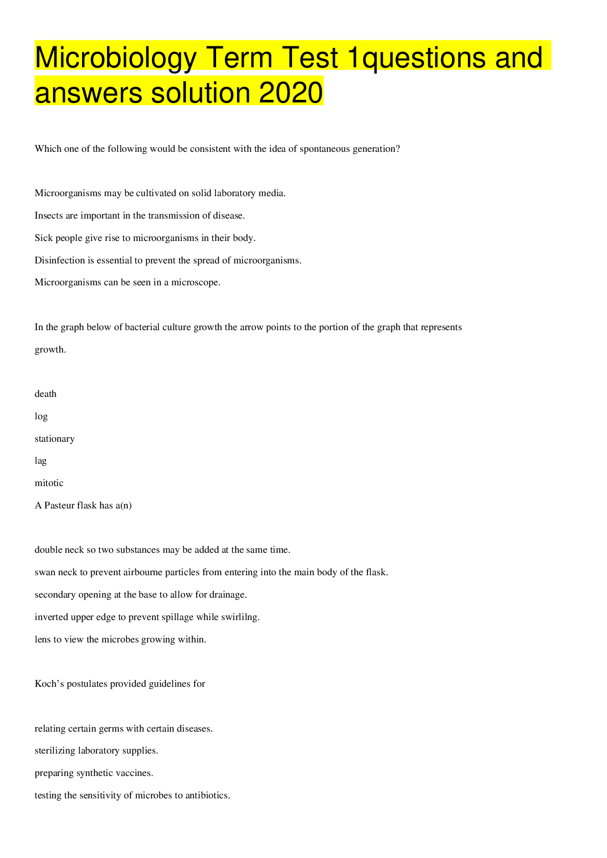 Micro Biology > QUESTIONS & ANSWERS > Microbiology Term Test 1questions and answers solution 2020 (All)