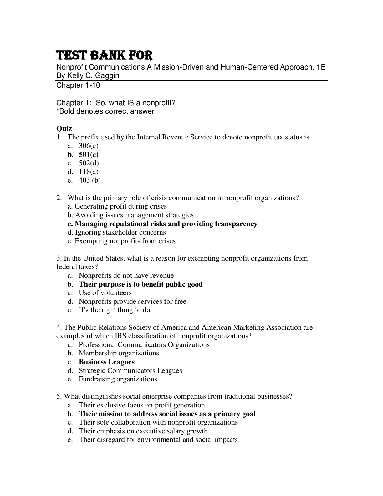 Communication > TEST BANKS > Test Bank For Nonprofit Communications A Mission-Driven and Human-Centered Approach, 1Edition By Kelly C. Gaggin (All)