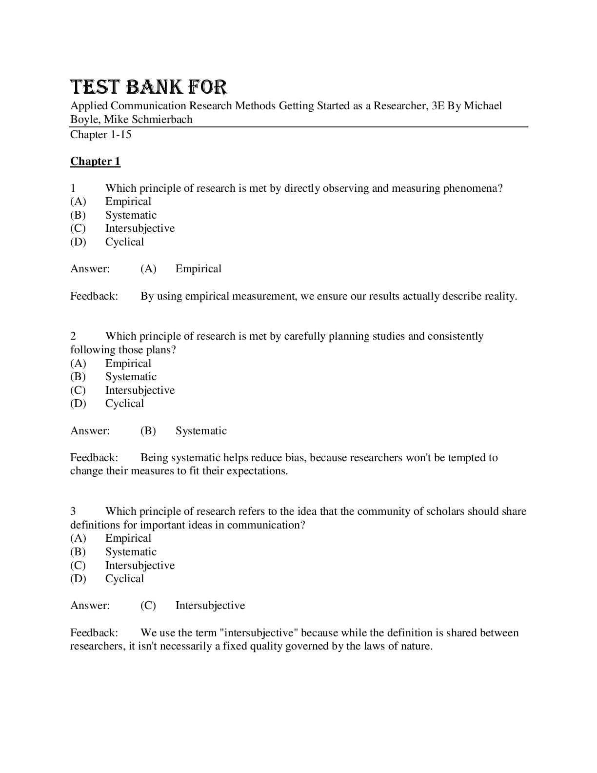 Communication > TEST BANKS > Test bank For Applied Communication Research Methods Getting Started as a Researcher, 3rd Edition By Michael Boyle, Mike Schmierbach (All)