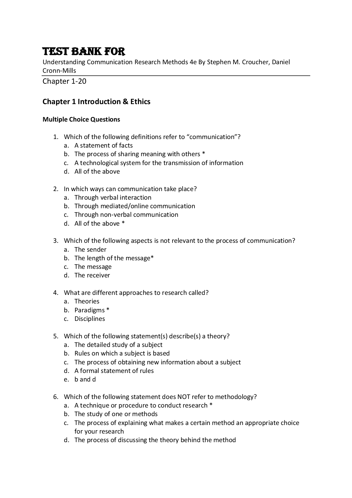 Communication > TEST BANKS > Test Bank For Understanding Communication Research Methods 4th Edition By Stephen M. Croucher, Daniel Cronn-Mills (All)