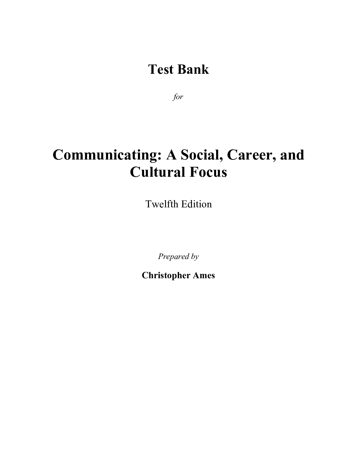 Communication > TEST BANKS > Communicating A Social, Career, and Cultural Focus, 12e Roy Berko, Andrew Wolvin (Test Bank) (All)
