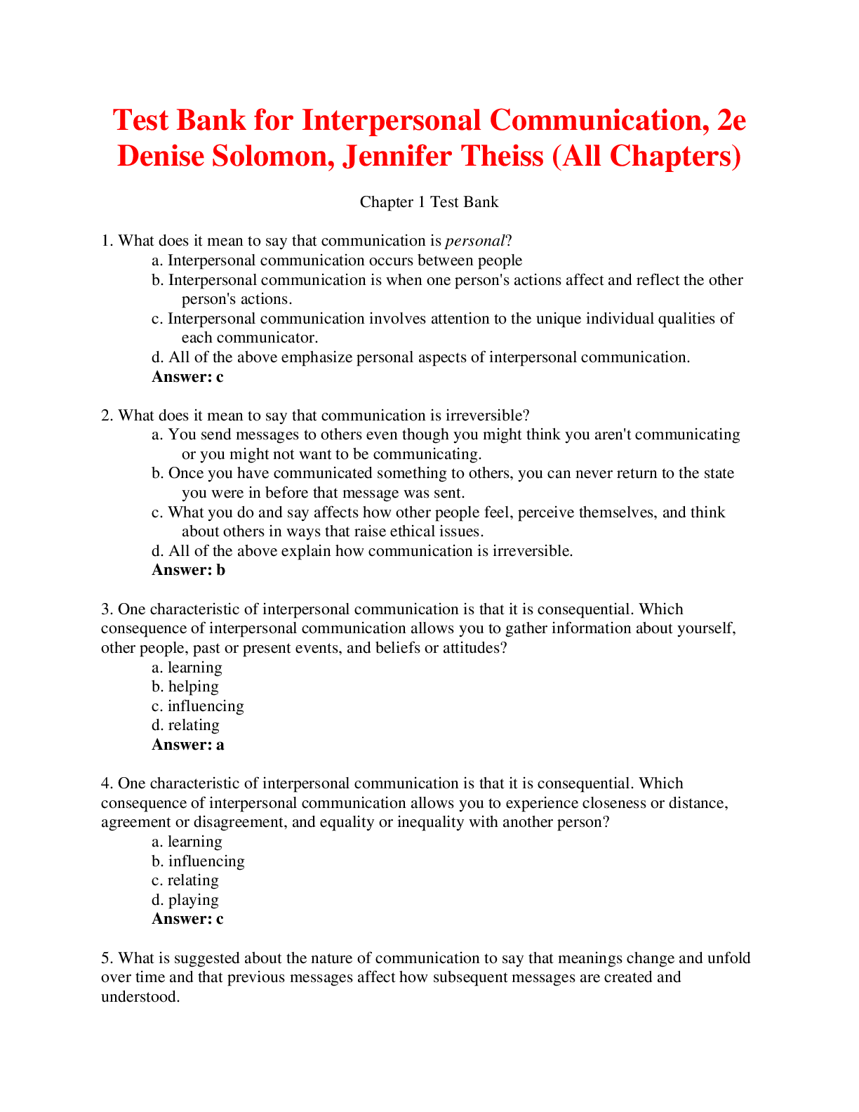 Communication > TEST BANKS > Interpersonal Communication 2nd Edition By Denise Solomon, Jennifer Theiss (Test Bank) (All)