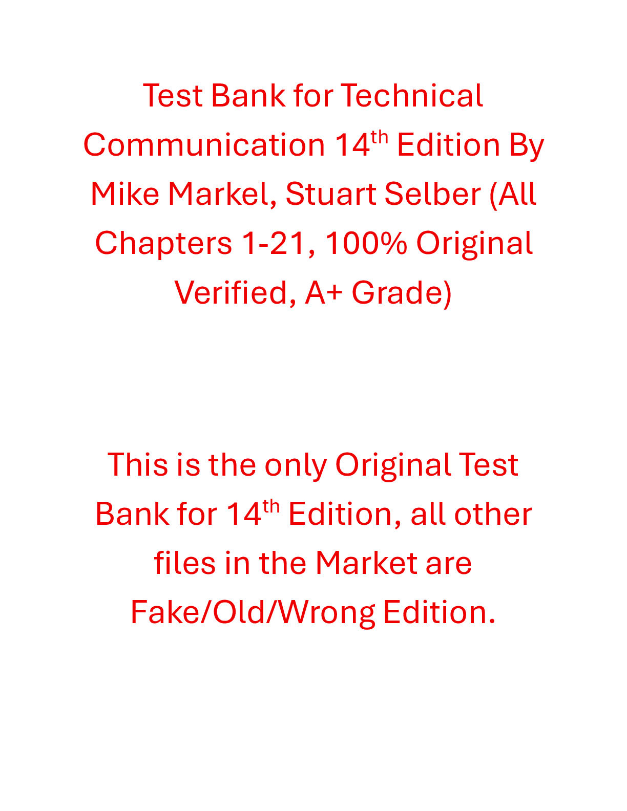 Communication > TEST BANKS > Test Bank for Technical Communication 14th Edition By Mike Markel, Stuart Selber (All)