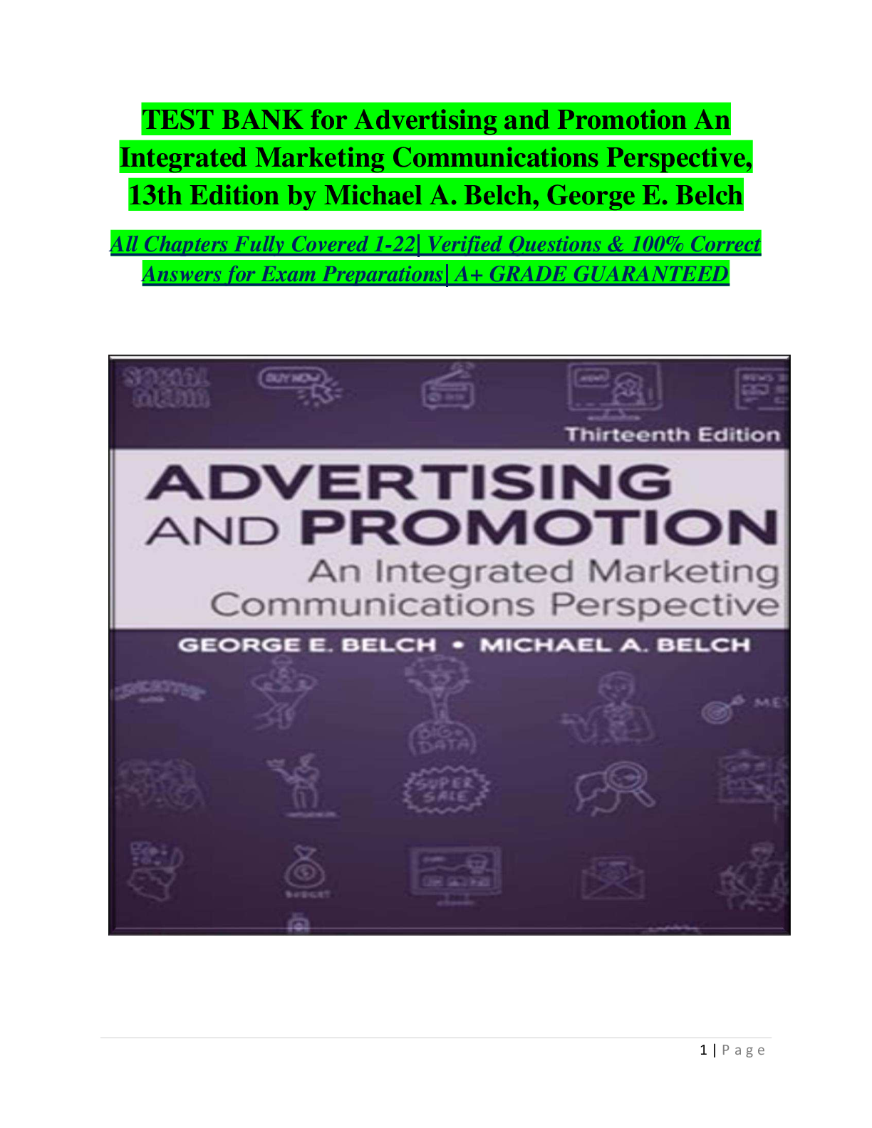 Communication > TEST BANKS > TEST BANK for Advertising and Promotion An Integrated Marketing Communications Perspective, 13th Edition by Michael A. Belch, George E. Belch CHAPTERS 1-22 (All)