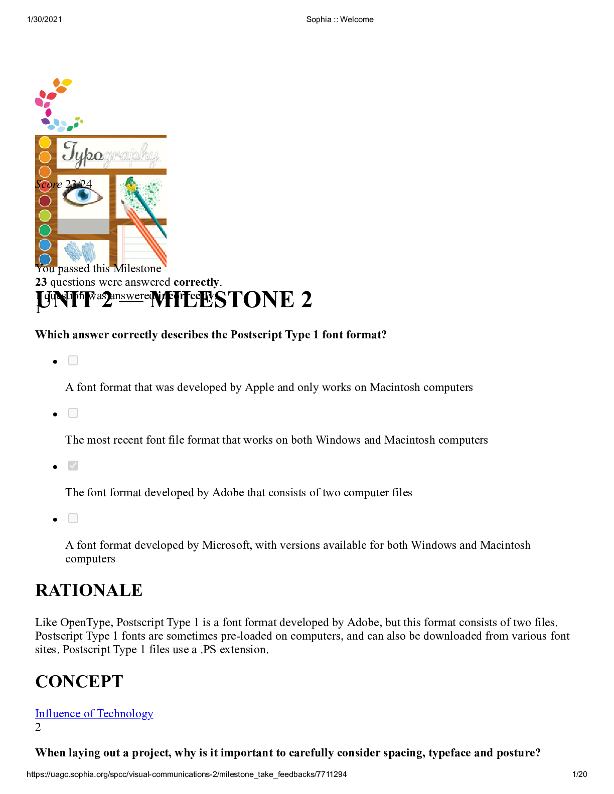 Communication > SOPHIA Milestone > Sophia College Readiness Milestone | all questions answered correctly | 100% score (All)