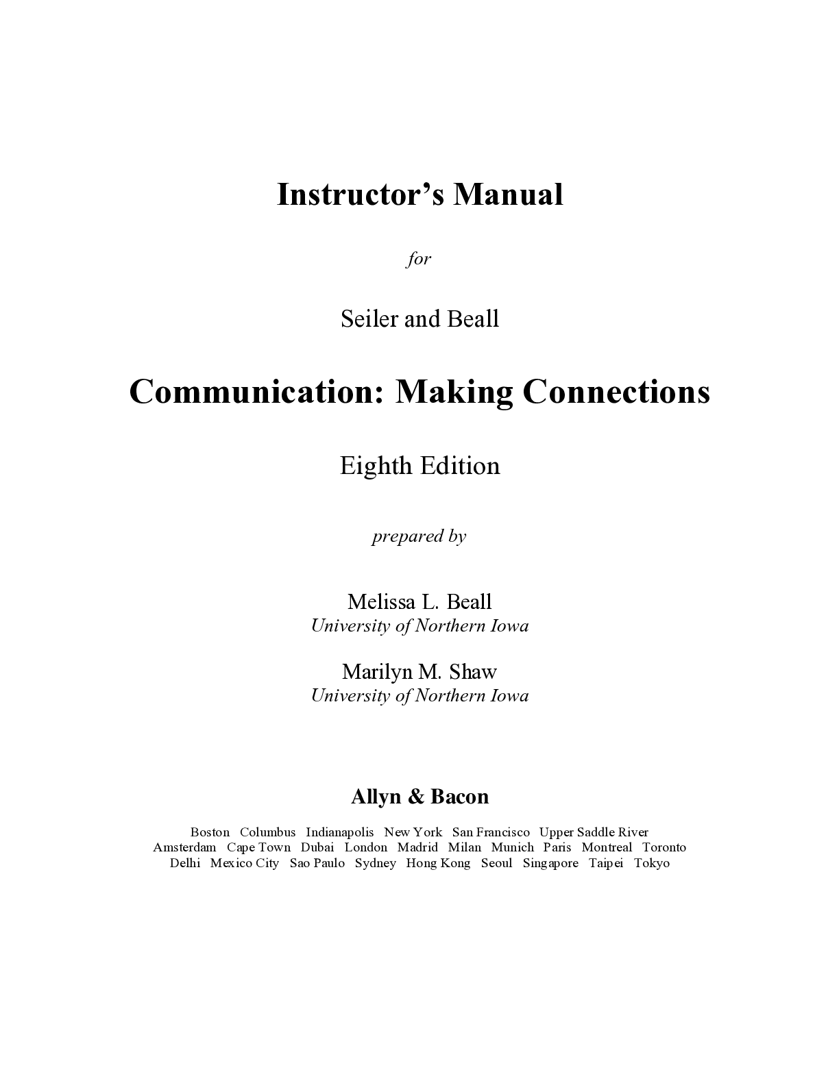 Communication > SOLUTIONS MANUAL > Solutions Manual For Communication Making Connections 8th Edition By William J. Seiler Melissa L. Beall (All)