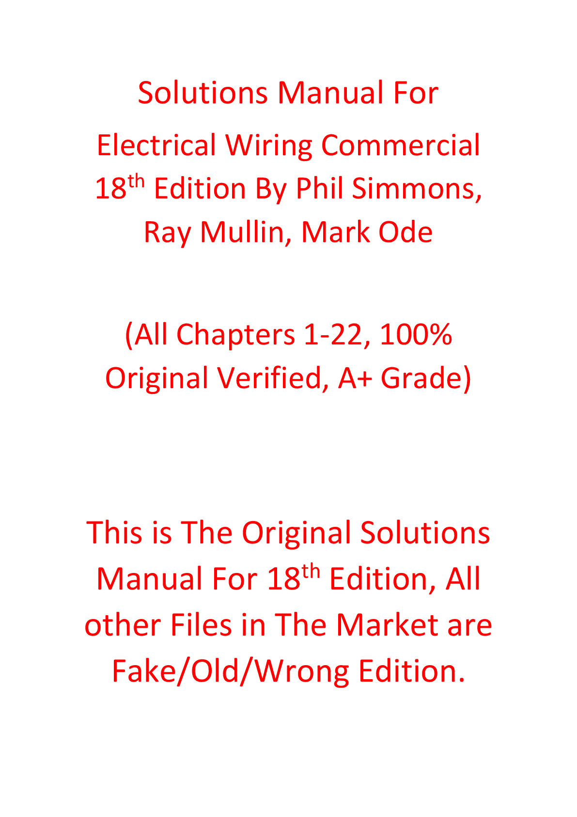 Communication > SOLUTIONS MANUAL > Solutions Manual For Electrical Wiring Commercial 18th Edition By Phil Simmons, Ray Mullin, Mark Ode (All)