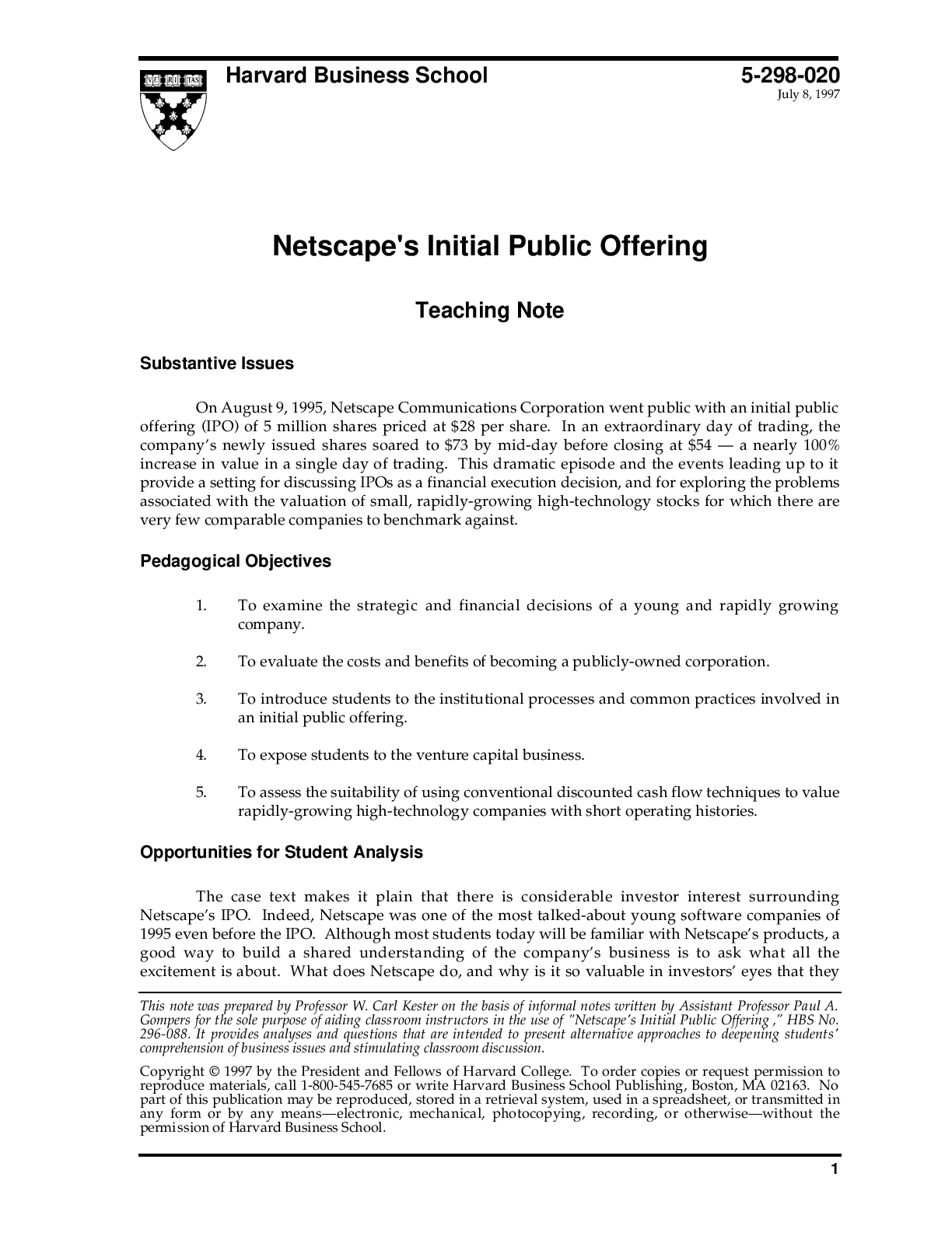 Communication > CASE STUDY > Case Solutions/ Notes for Netscape's Initial Public Offering, By W. Carl Kester, Kendall Backstrand (All)