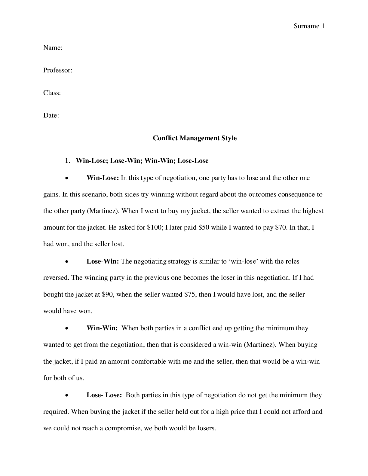 Communication > ESSAY > Conflict Management Style (All)