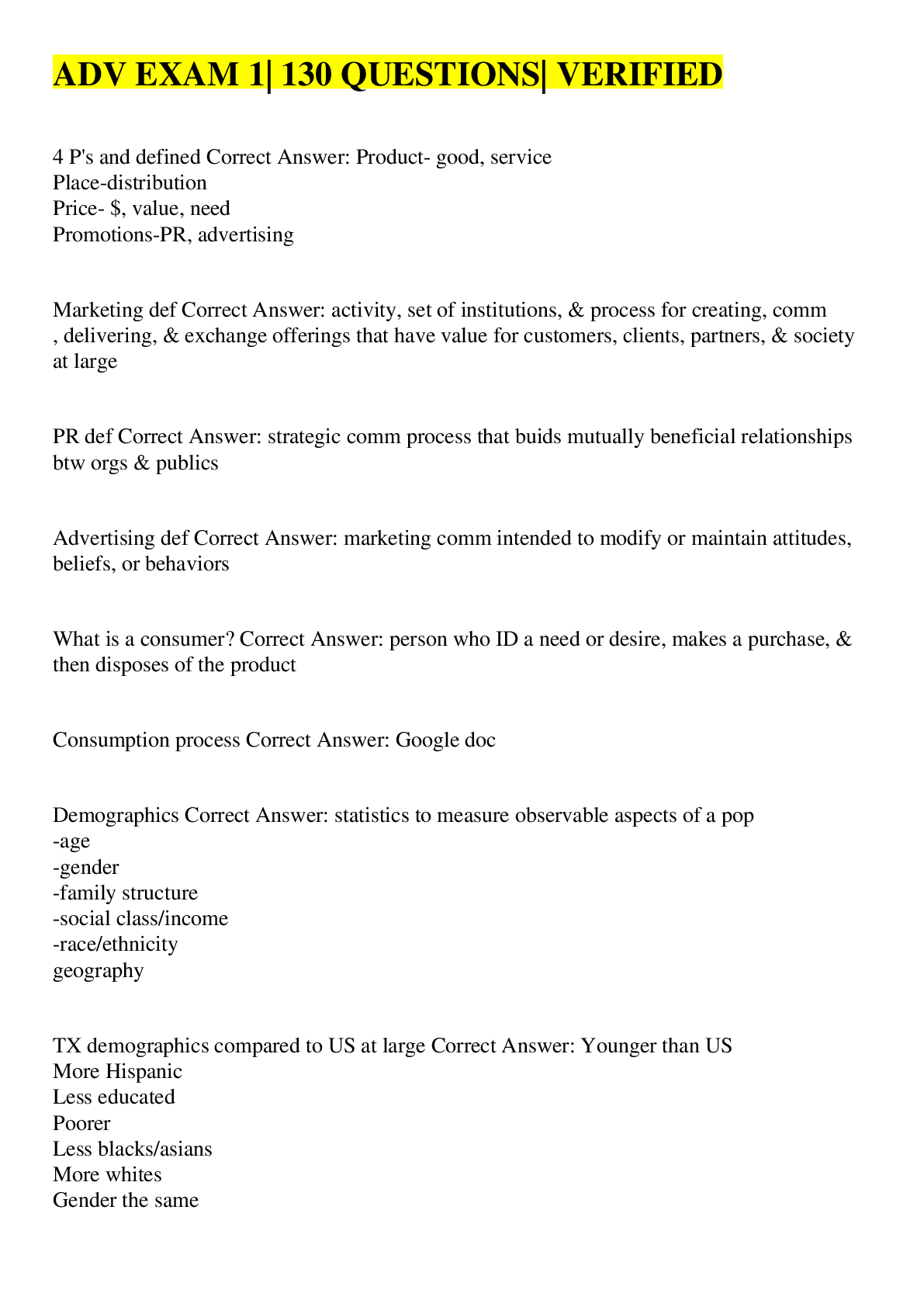 Communication > EXAM > ADV EXAM 1| 130 QUESTIONS| VERIFIED (All)
