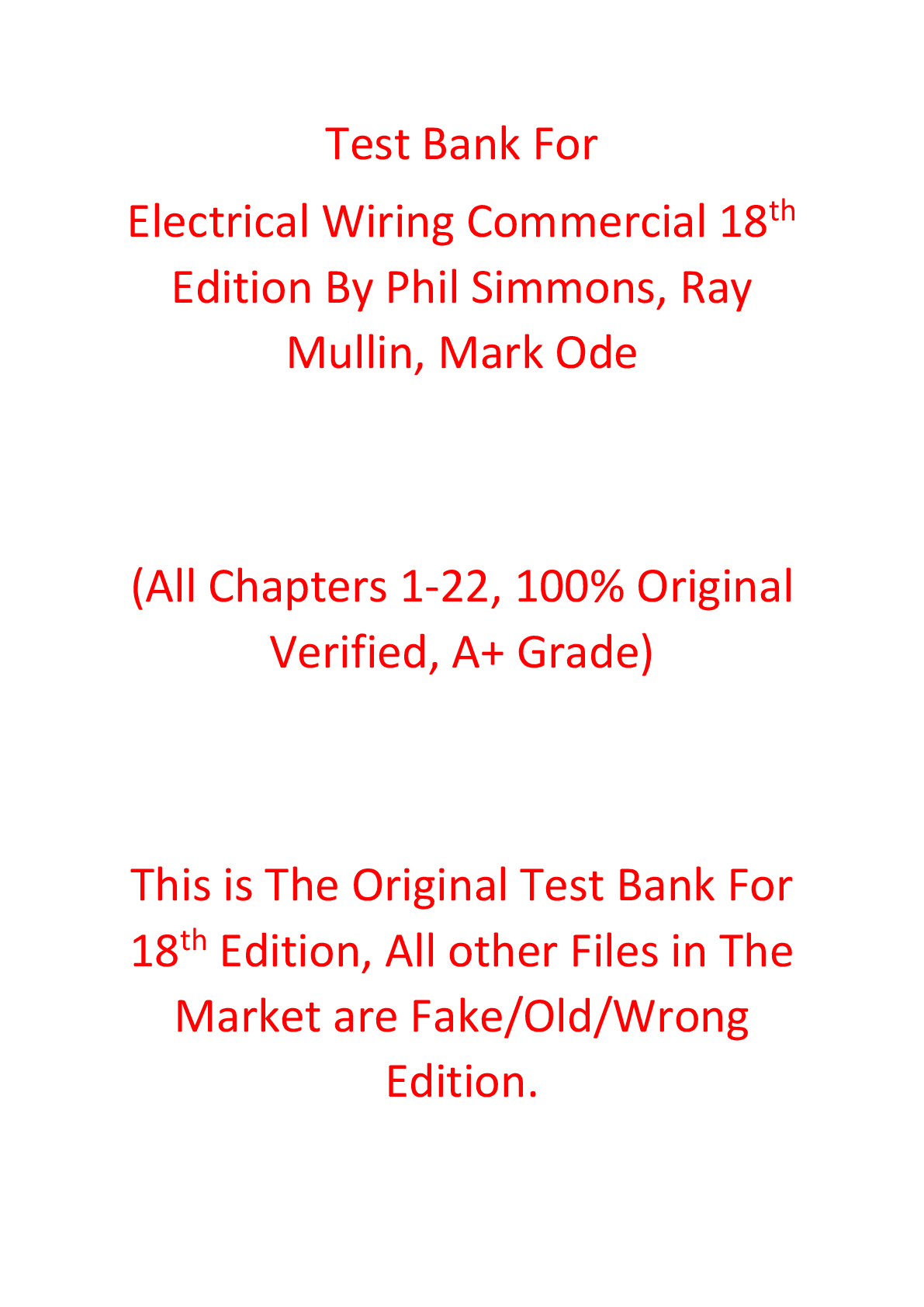 Communication > TEST BANKS > Test Bank For Electrical Wiring Commercial 18th Edition By Phil Simmons, Ray Mullin, Mark Ode (All)