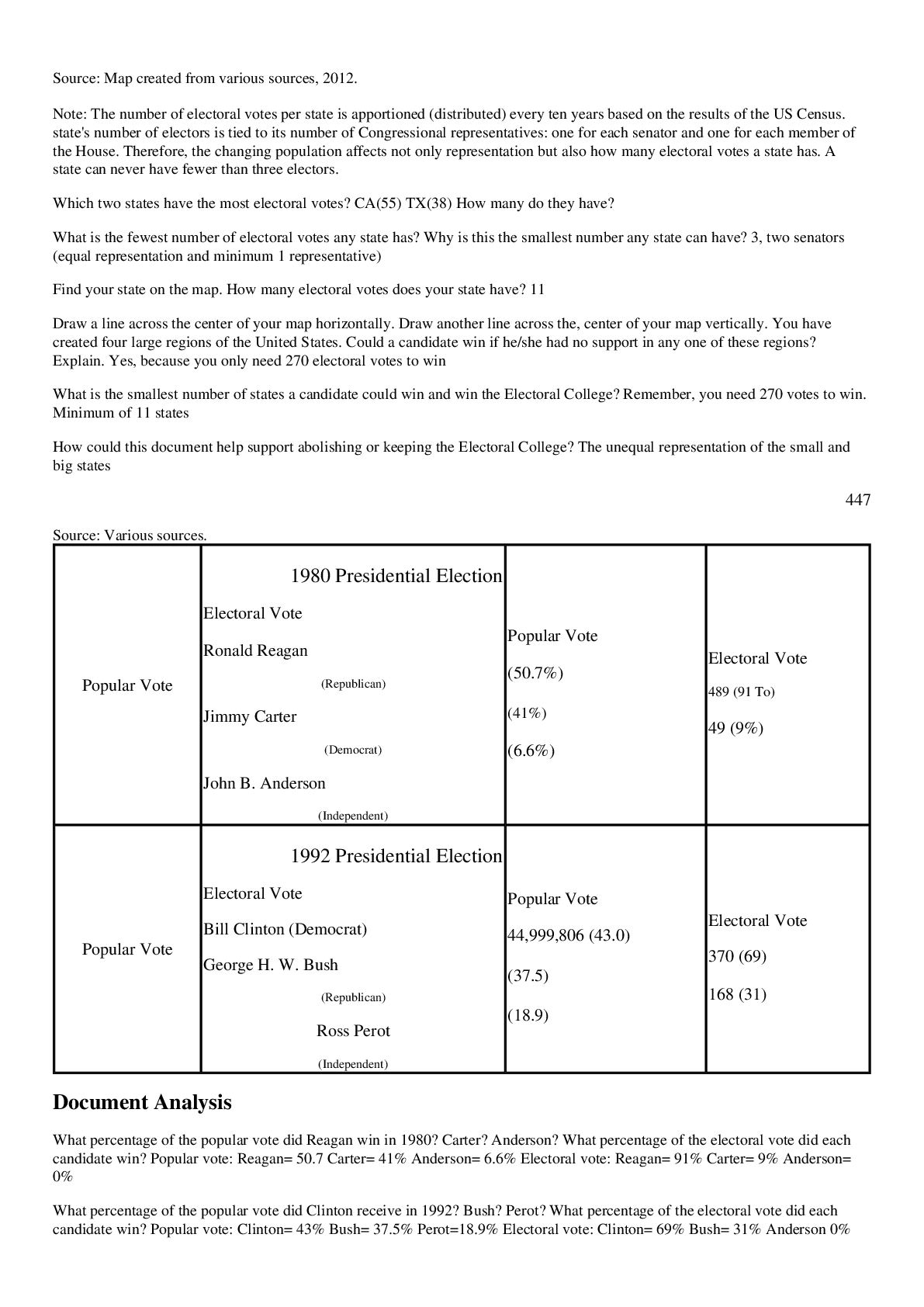 Government > EXAM > Skyline High School - GOVERNMENT 2307 Electoral College DBQ Documents (All)