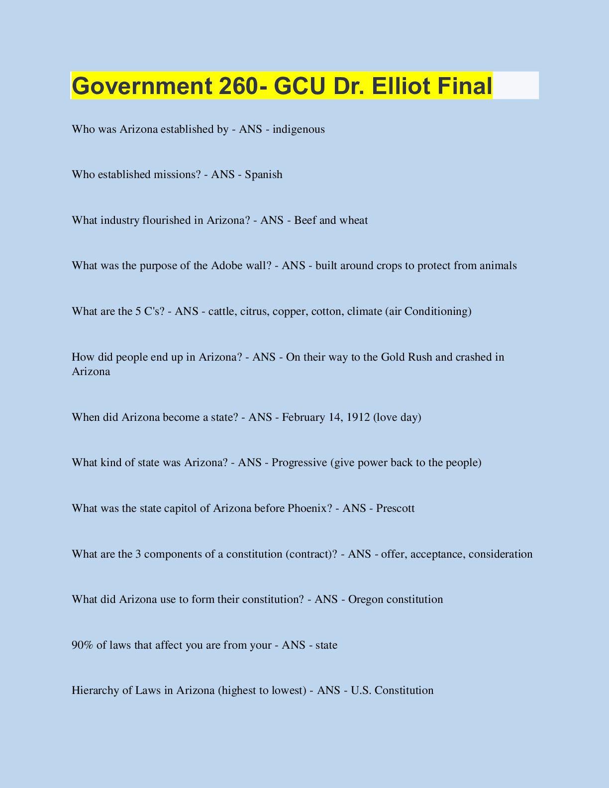 Government > QUESTIONS & ANSWERS > FINAL EXAM STUDY GUIDE GOVERNMENT with Complete solution (All)