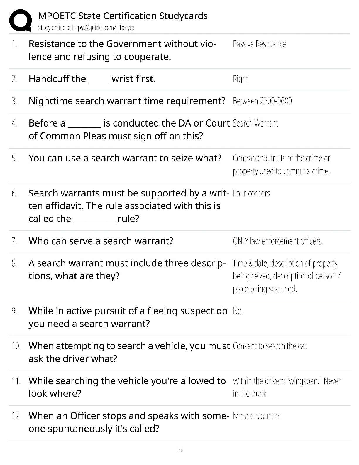 Government > QUESTIONS & ANSWERS > MPOETC State Certification / Pennsylvania Police Officer / 2025 Exam / Score 100% Studyset & Flashcards (All)