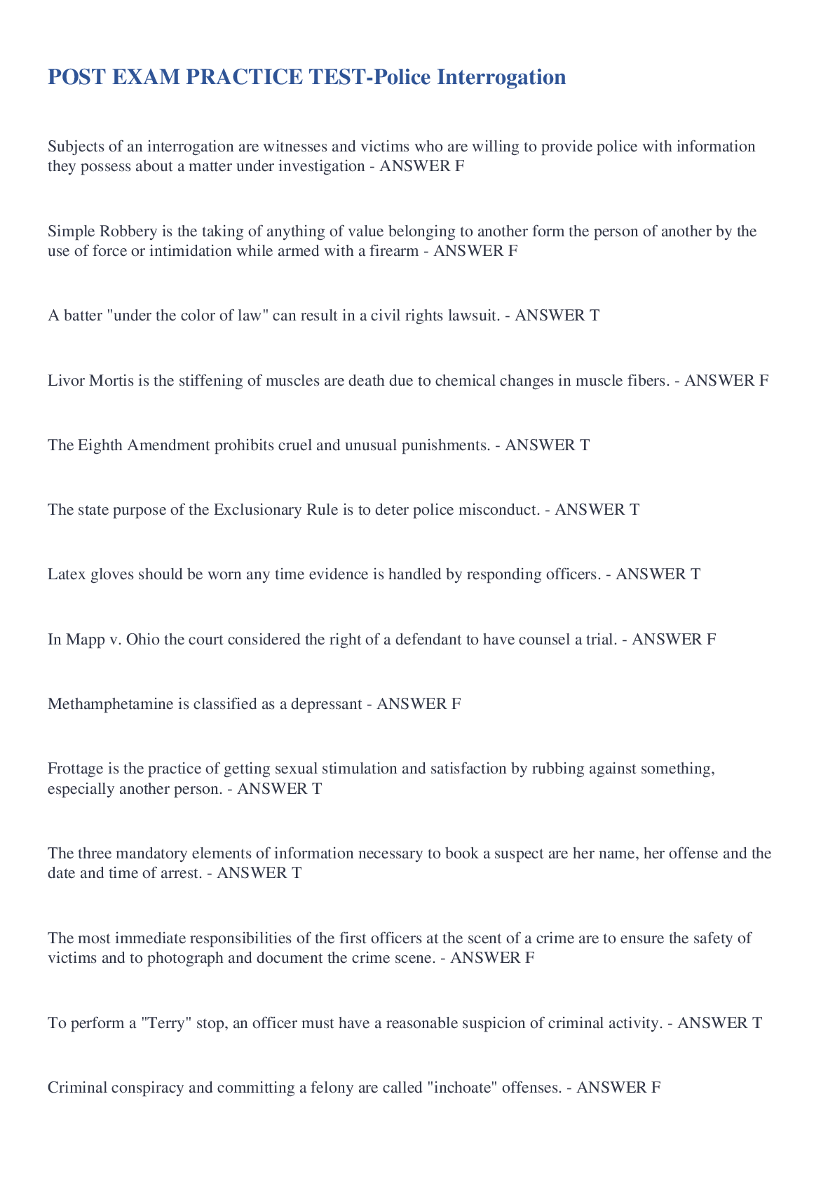 Government > EXAM > POST EXAM PRACTICE TEST-Police Interrogation (All)