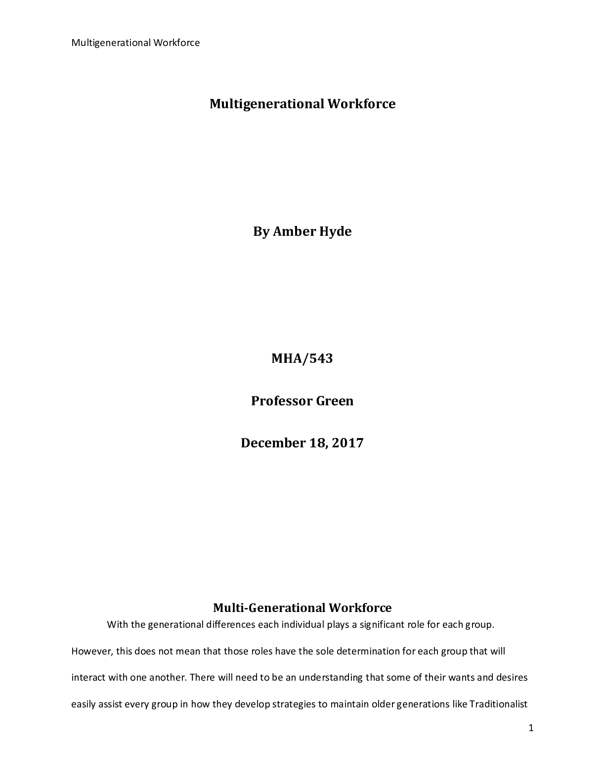 Urban Studies > STUDY GUIDE > MHA 543: Benchmark Assignment: Multi-generational workforce assignment, Complete A+ Solution Guide. (All)