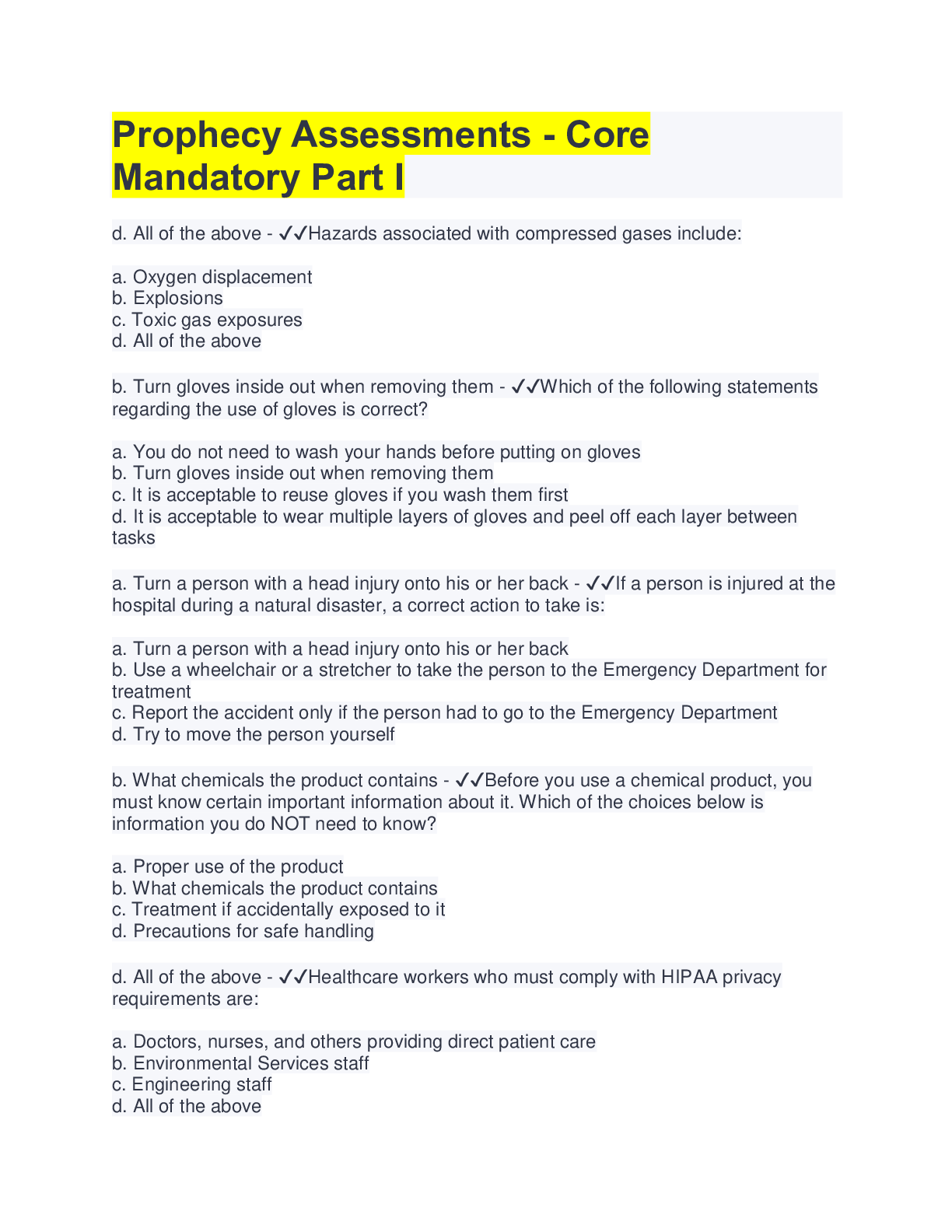 Disaster Management > QUESTIONS & ANSWERS > Prophecy Assessments - Core Mandatory Part I (All)