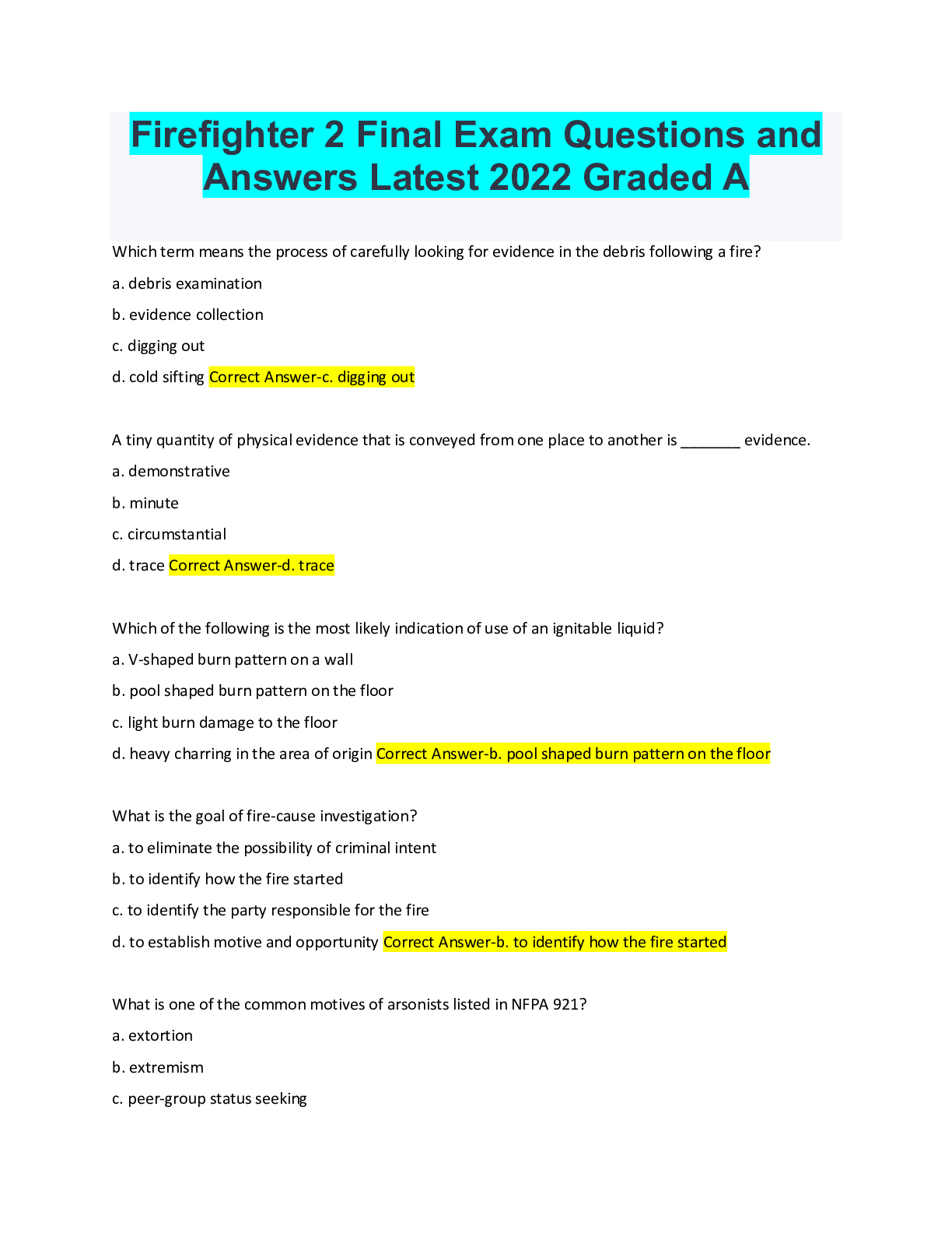 Disaster Management > EXAM > Firefighter 2 Final Exam Questions and Answers Latest 2022 Graded A (All)