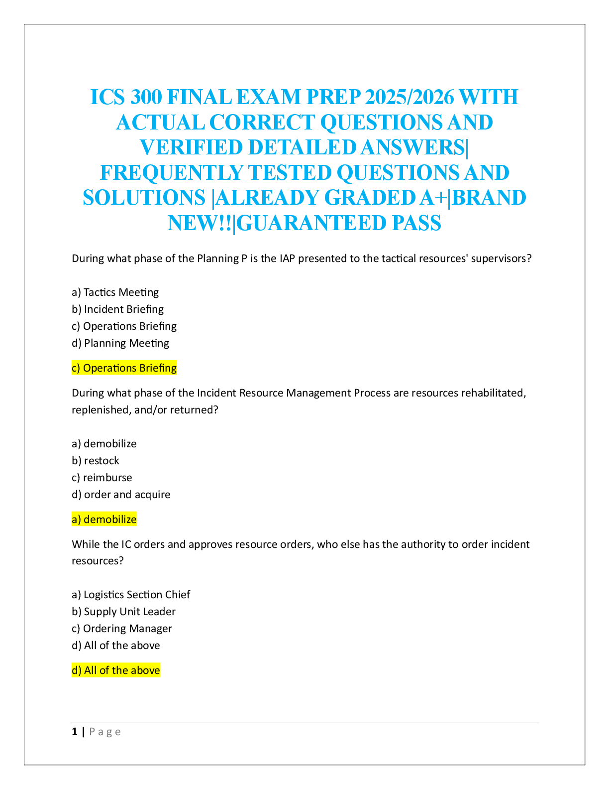 Disaster Management > FINAL EXAM > ICS 300 FINAL EXAM PREP 2025/2026 (All)