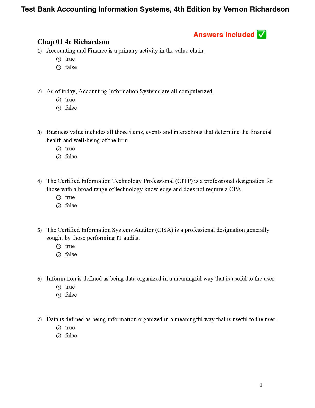 Management Information Systems (MIS) > TEST BANKS > Test Bank Accounting Information Systems, 4th Edition by Vernon Richardson (All)