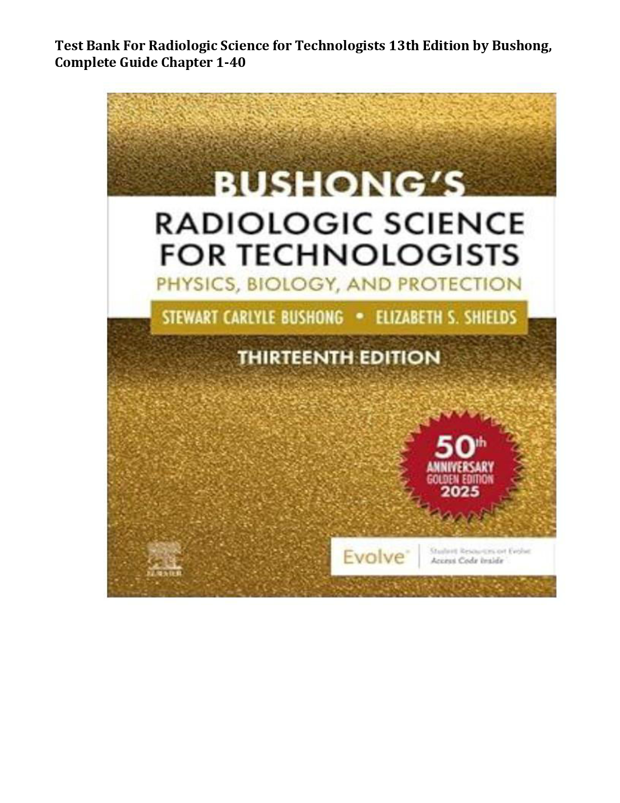 Environmental Science > TEST BANKS > Test Bank For Radiologic Science for Technologists 13th Edition (Mosby, 2025) by Bushong Complete All Chapters 1-40! ALREADY RATED A+ 100% CORRECT ANSWERS (All)