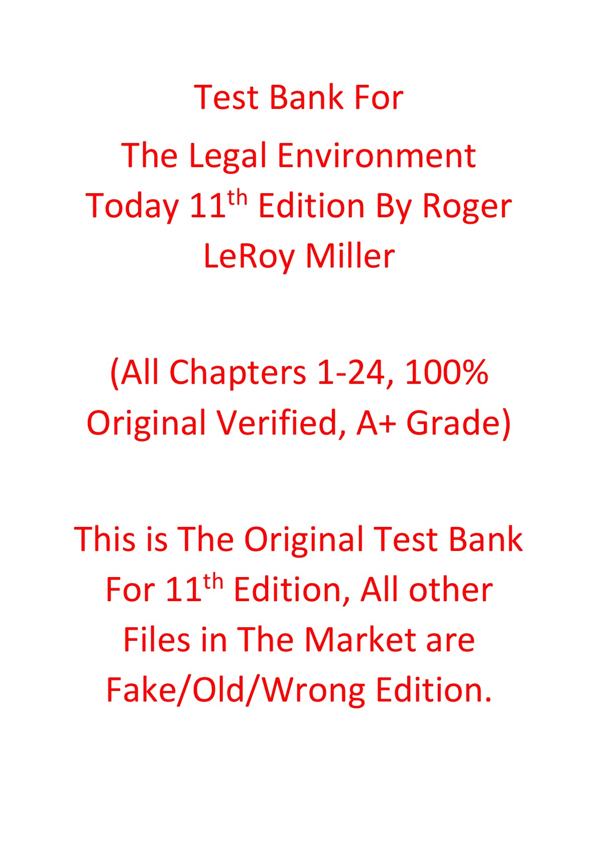 Environmental Science > TEST BANKS > Test Bank For The Legal Environment Today 11th Edition By Roger LeRoy Miller (All)