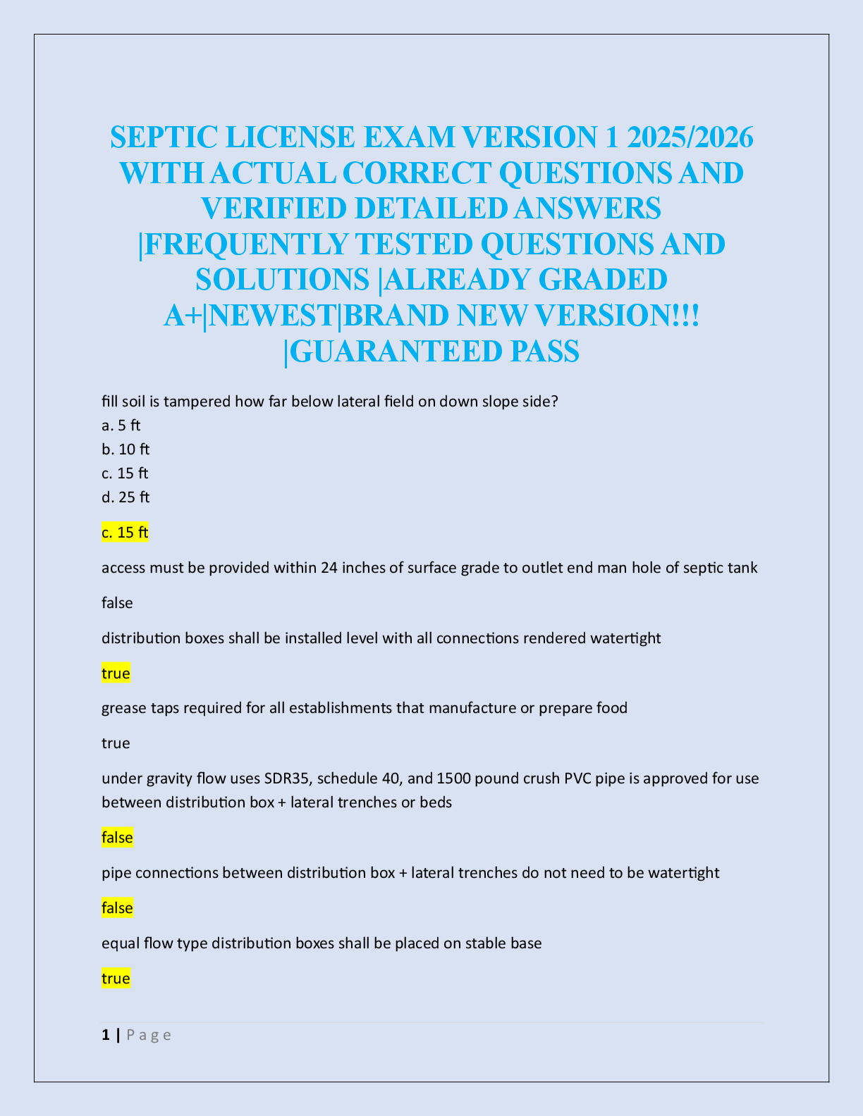 Environmental Science > EXAM > SEPTIC LICENSE EXAM VERSION 1 2025/2026 (All)