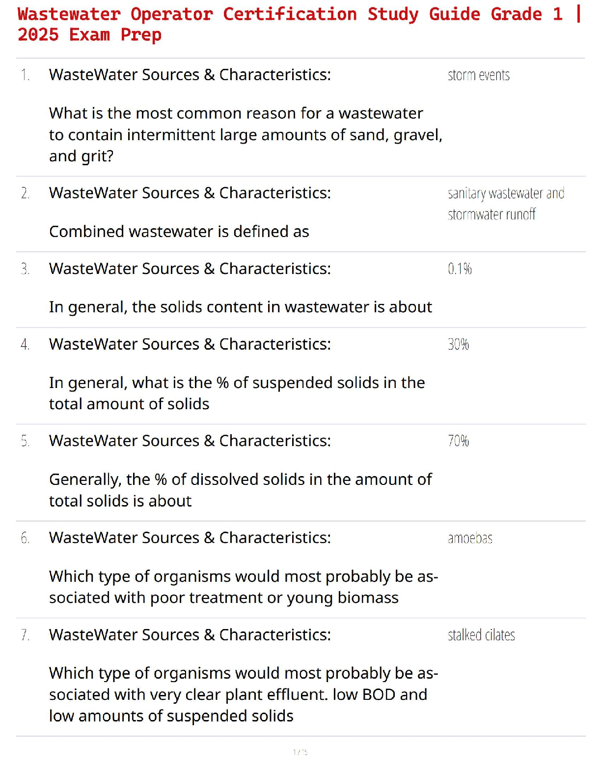 Environmental Science > STUDY GUIDE > Wastewater Operator Certification Study Guide Grade 1 | 2025 Exam Prep (All)