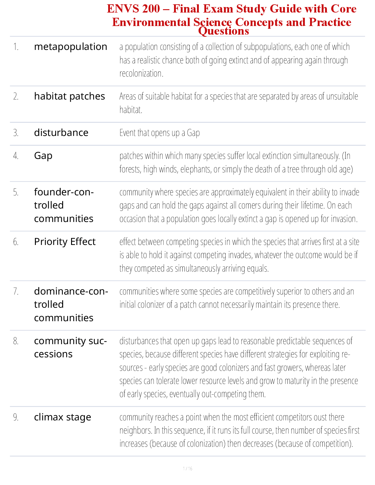 Environmental Science > STUDY GUIDE > ENVS 200 – Final Exam Study Guide with Core Environmental Science Concepts and Practice Questions (All)