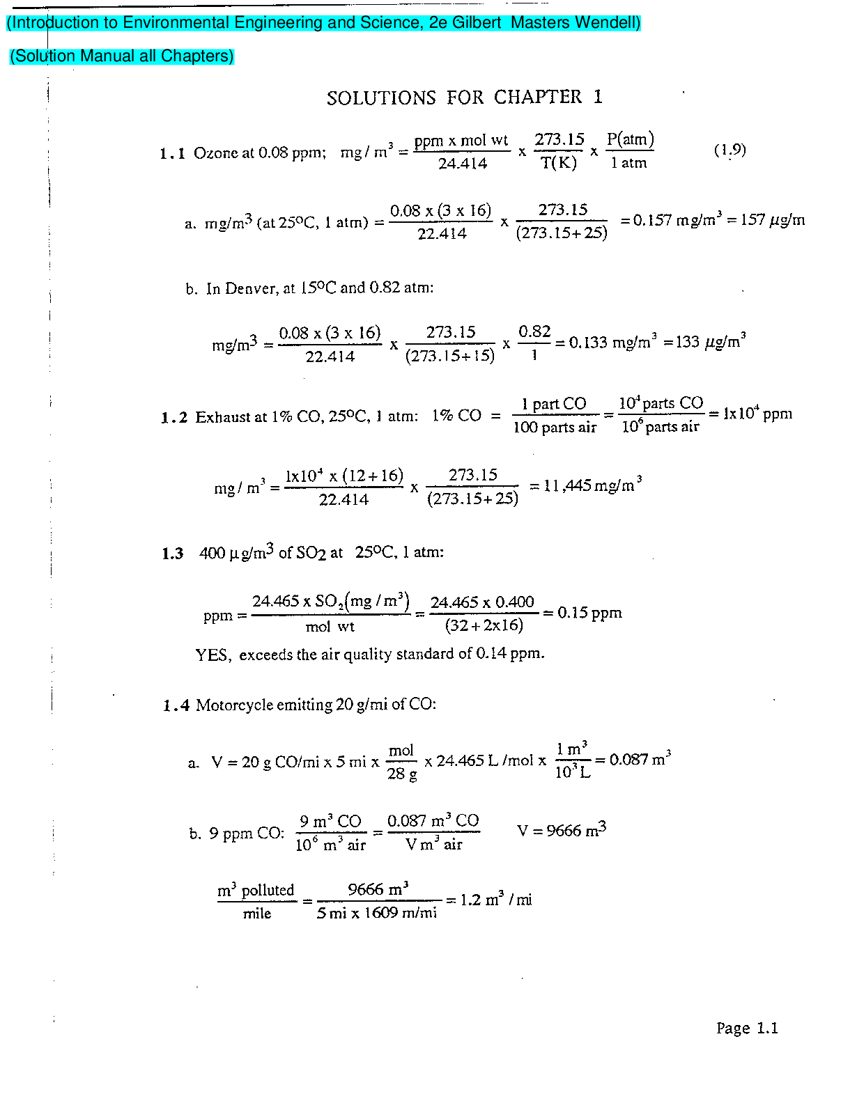 Environmental Science > SOLUTIONS MANUAL > Introduction to Environmental Engineering and Science 2nd Edition By Gilbert Masters Wendell (Solution Manual) (All)