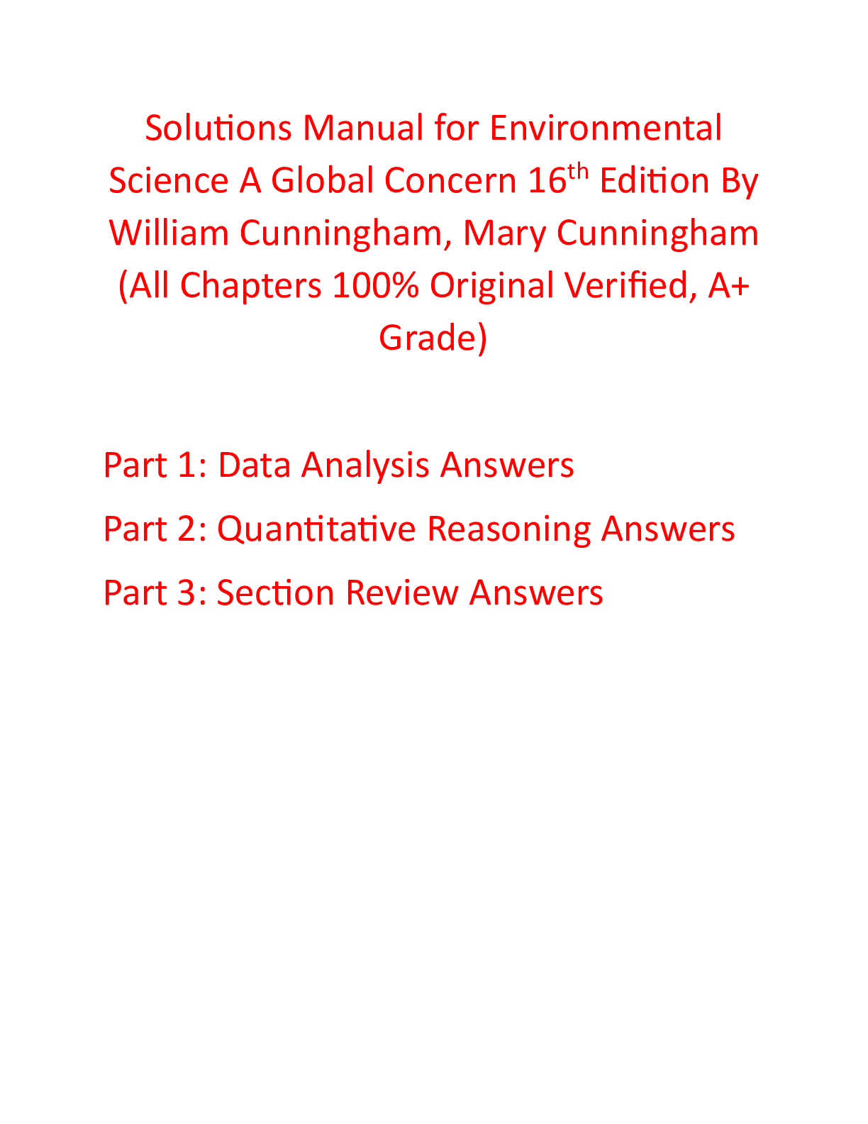 Environmental Science > SOLUTIONS MANUAL > Solutions Manual For Environmental Science A Global Concern 16th Edition By William Cunningham, Mary Cunningham | All Chapters, 100% Original Verified (All)