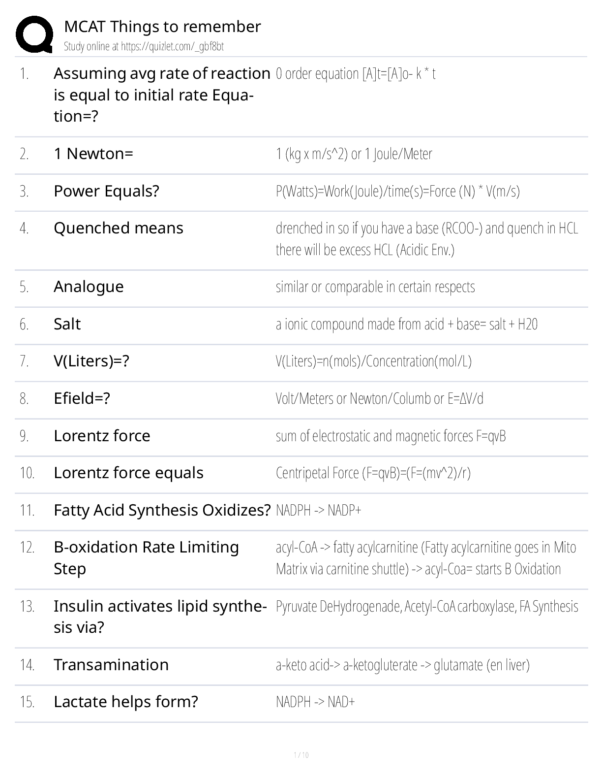 Critical Thinking > STUDY GUIDE > MCAT Things to Remember — High-Yield Class Notes, Study Guide & Test Bank (MCAT Prep Essentials) (All)