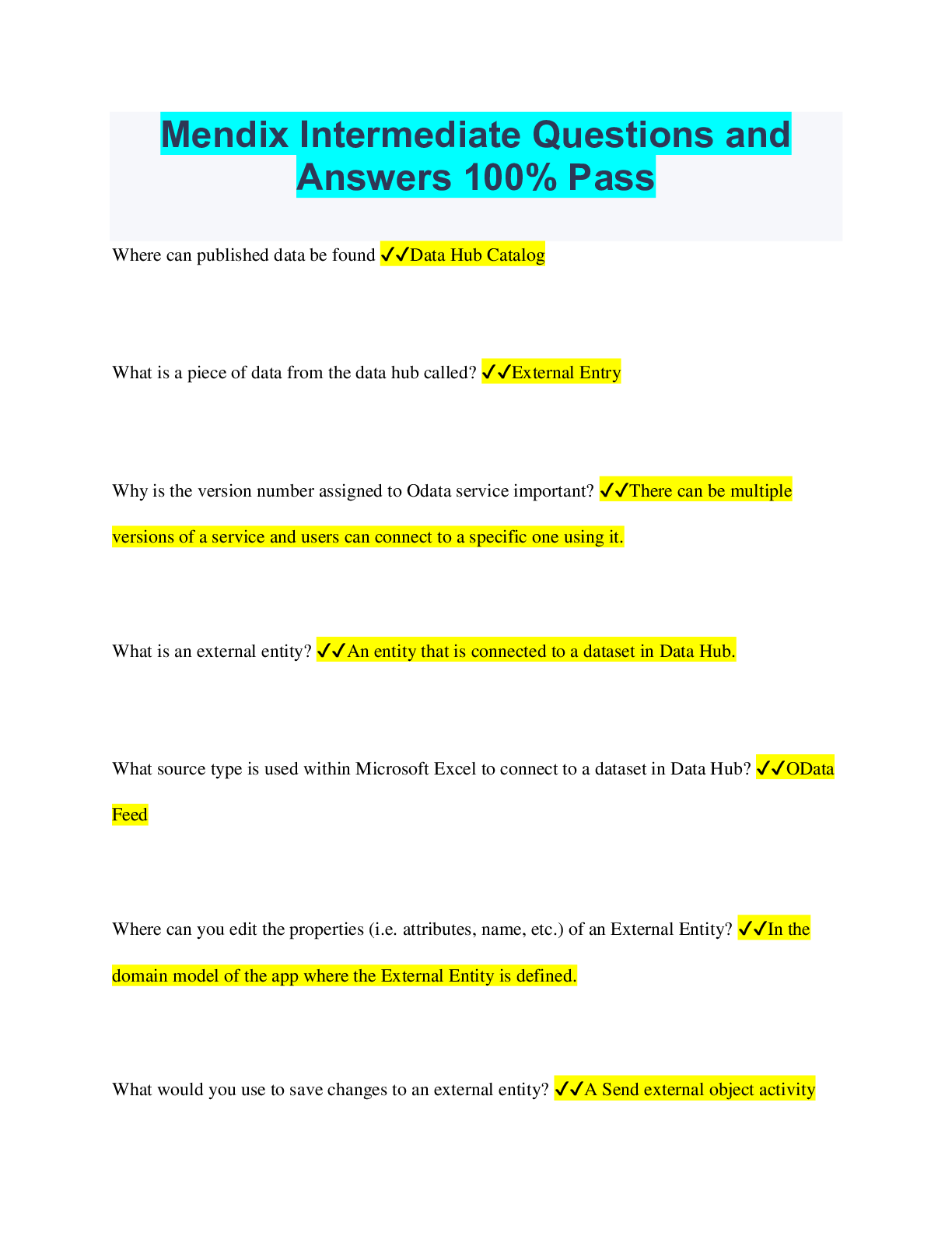 Computer Science > QUESTIONS & ANSWERS > Mendix Intermediate Questions and Answers 100% Pass (All)