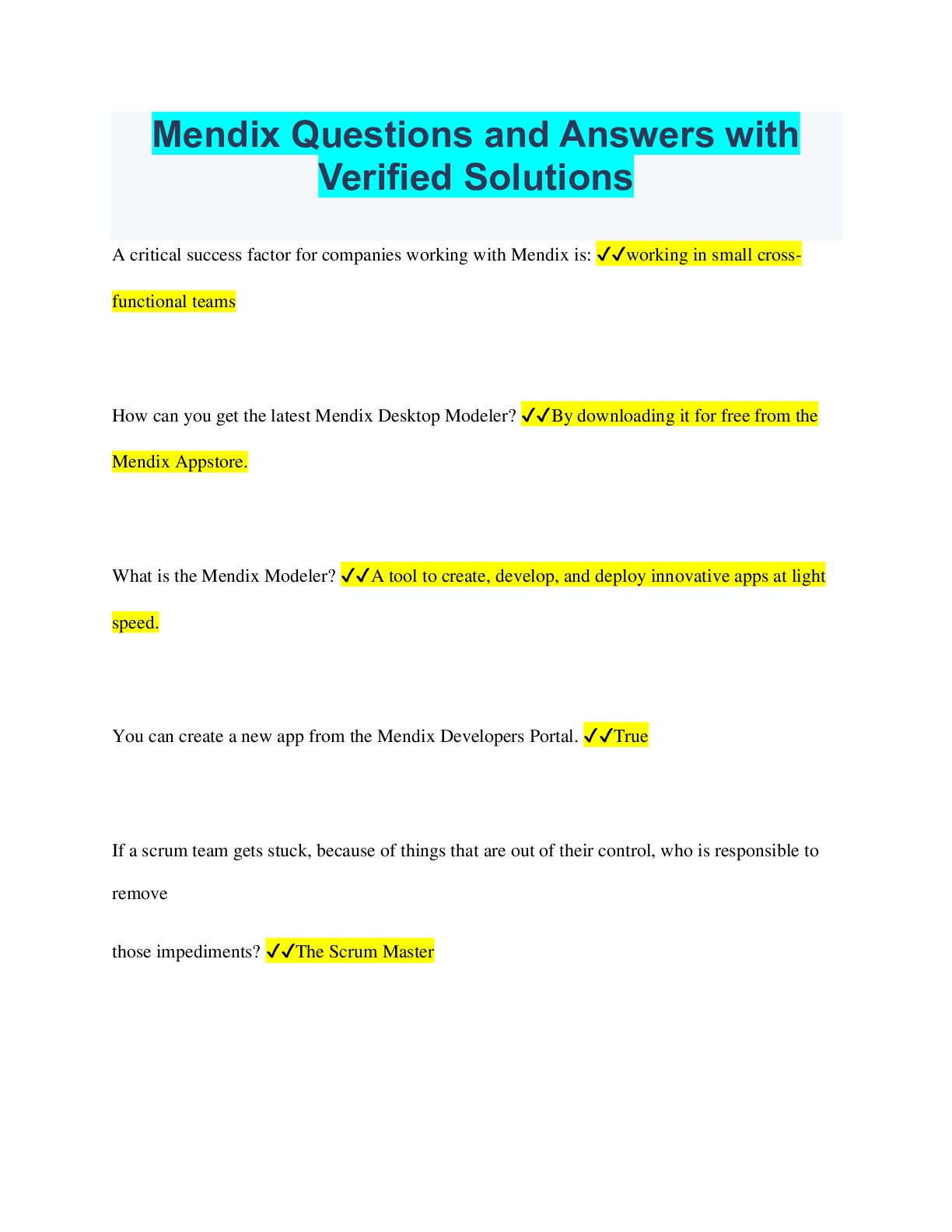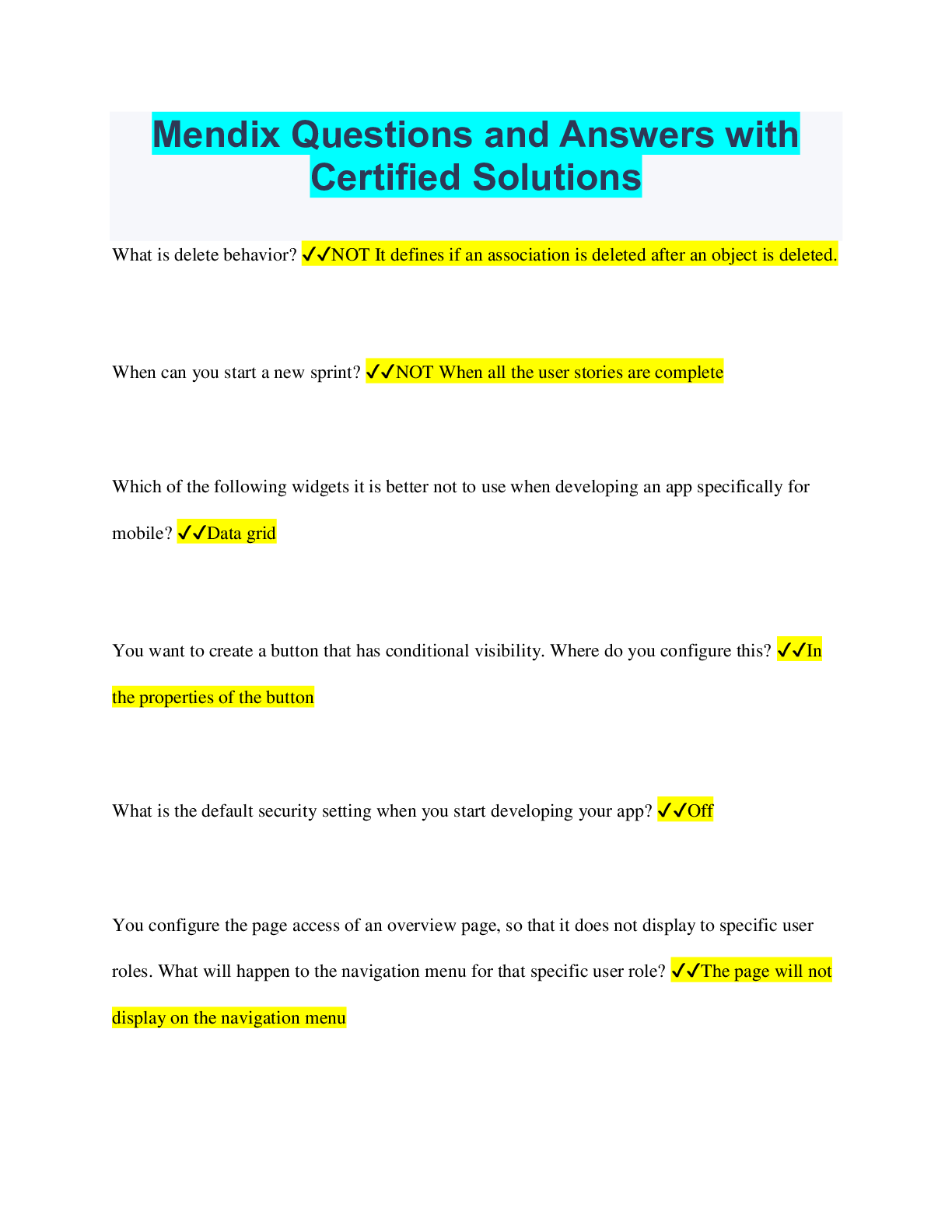 Computer Science > QUESTIONS & ANSWERS > Mendix Questions and Answers with Verified Solutions (All)