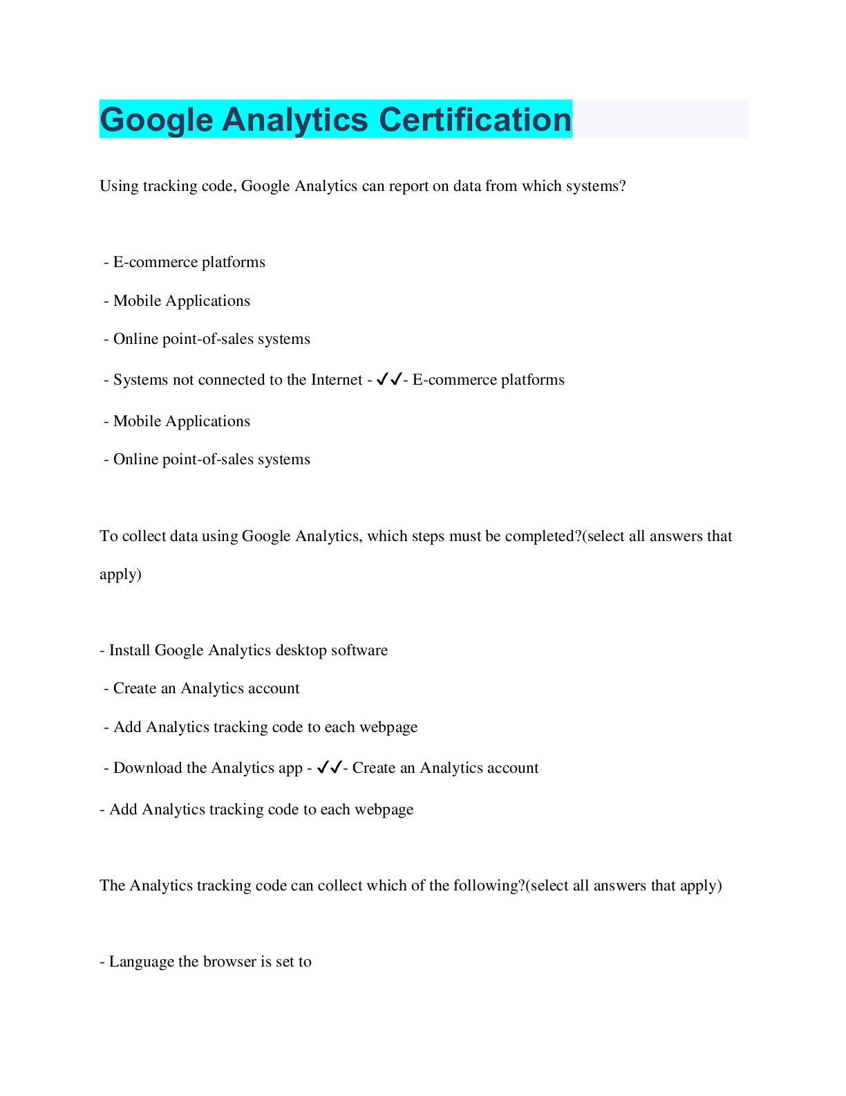 Computer Science > QUESTIONS & ANSWERS > Google Analytics Certification (All)