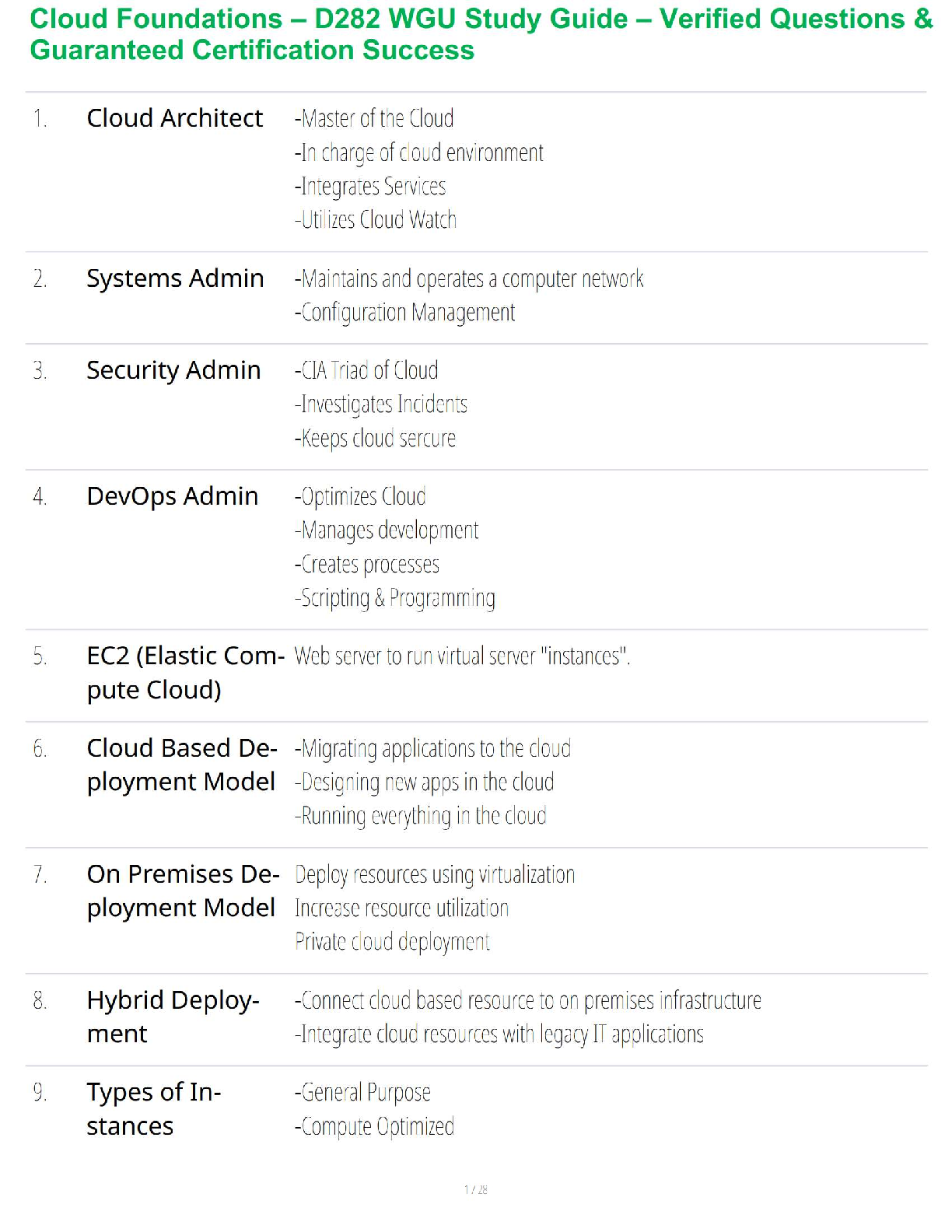 Computer Science > STUDY GUIDE > Cloud Foundations – D282 WGU Study Guide – Verified Questions & Guaranteed Certification Success (All)