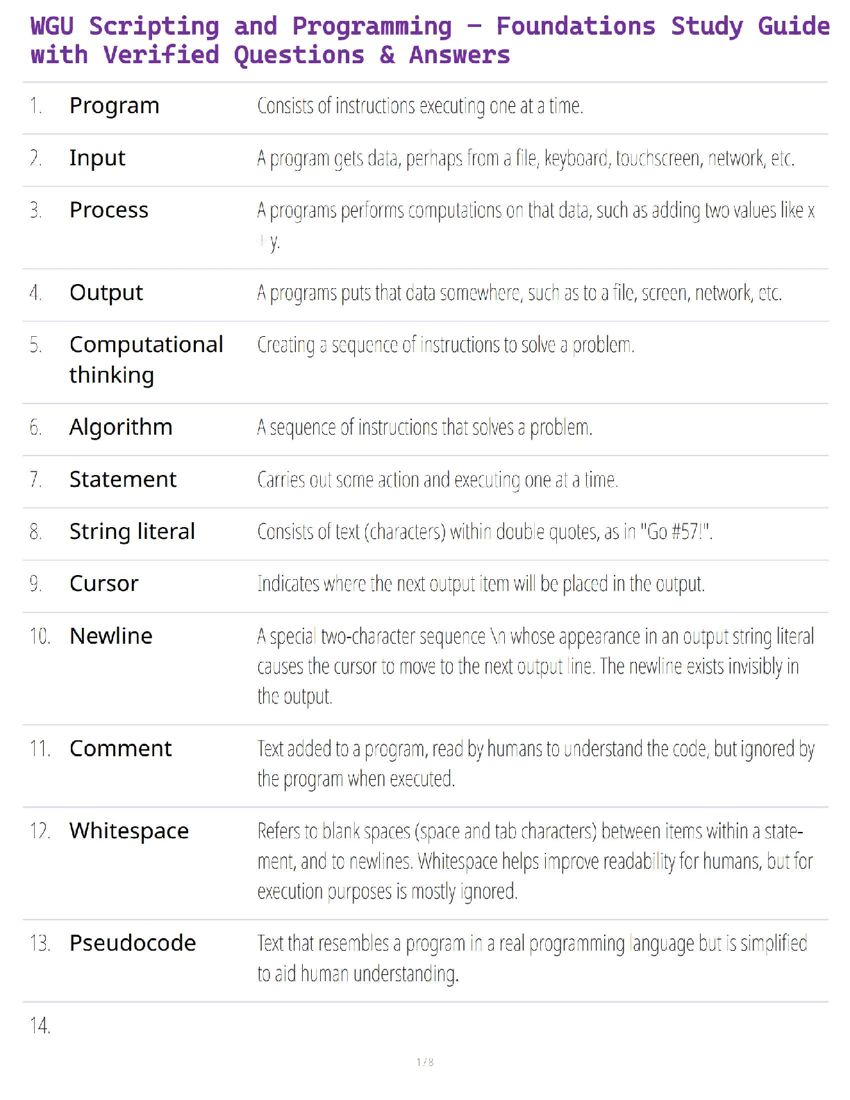 Computer Science > STUDY GUIDE > WGU Scripting and Programming – Foundations Study Guide with Verified Questions & Answers (All)