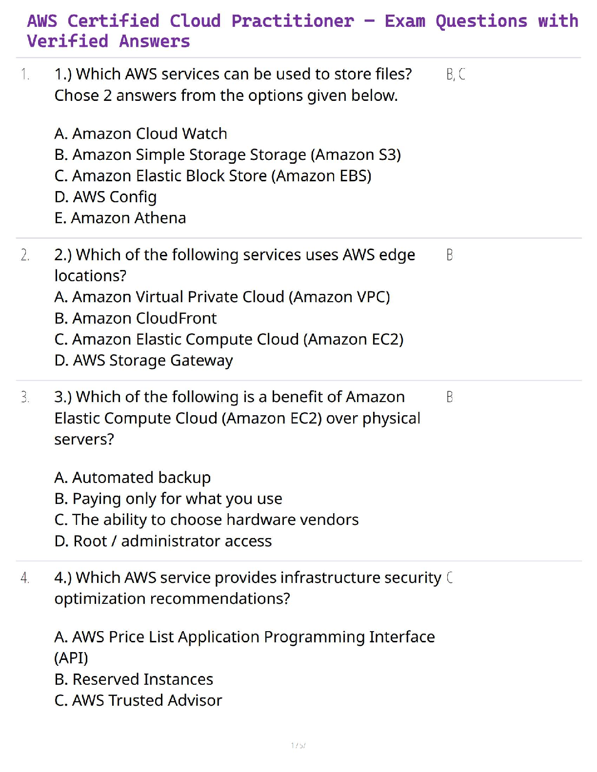 Computer Science > QUESTIONS and ANSWERS > AWS Certified Cloud Practitioner – Exam Questions with Verified Answers (All)