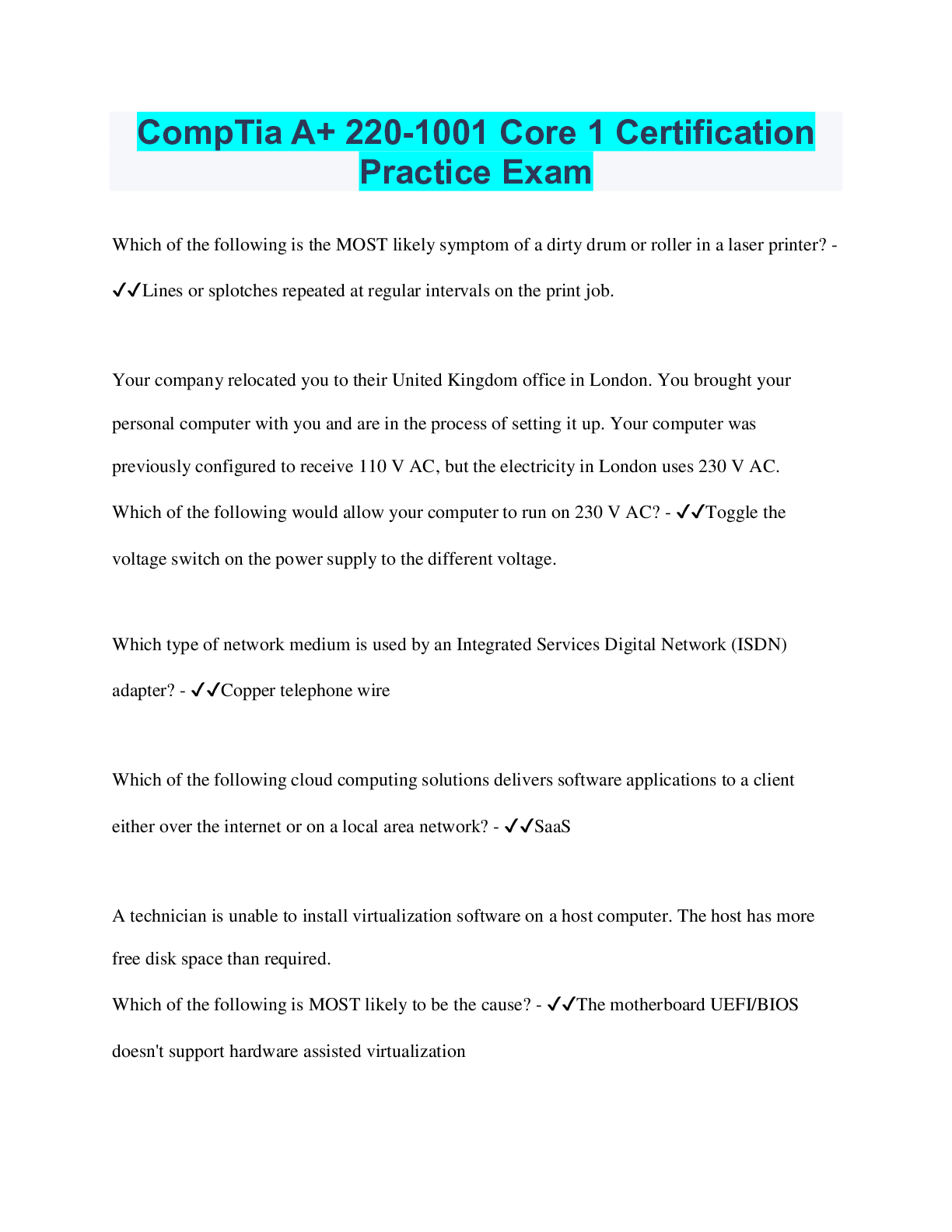 Computer Science > QUESTIONS & ANSWERS > CompTia A+ 220-1001 Core 1 Certification Practice Exam (All)