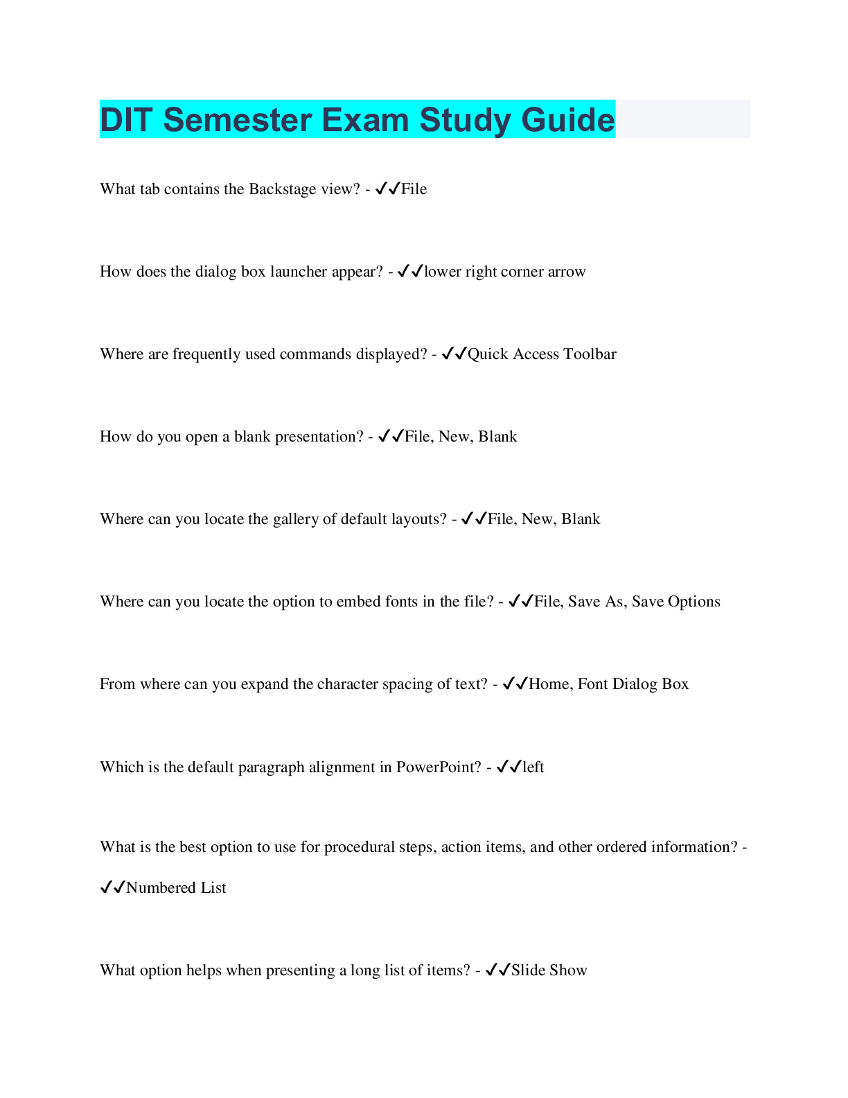 Computer Science > QUESTIONS & ANSWERS > DIT Semester Exam Study Guide (All)