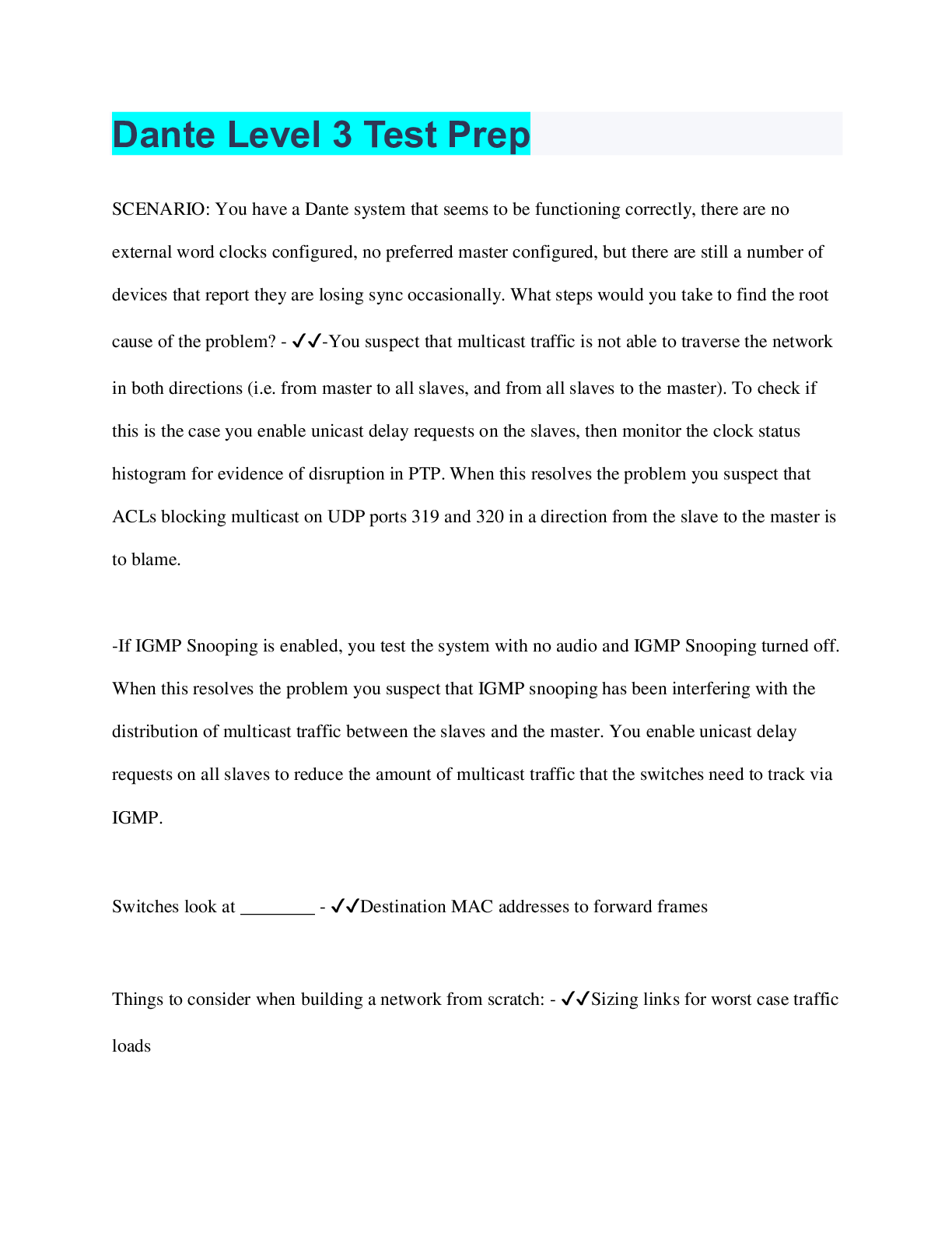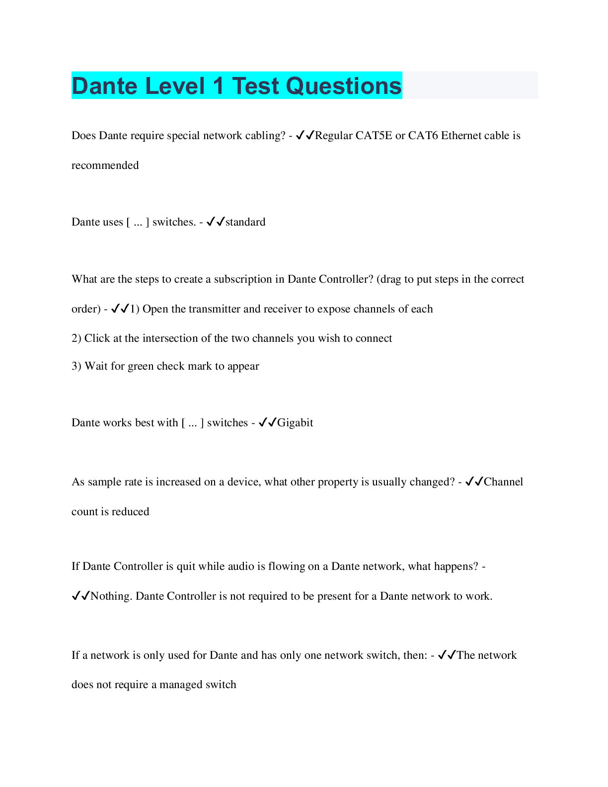 Computer Science > QUESTIONS & ANSWERS > Dante Level 1 Test Questions (All)