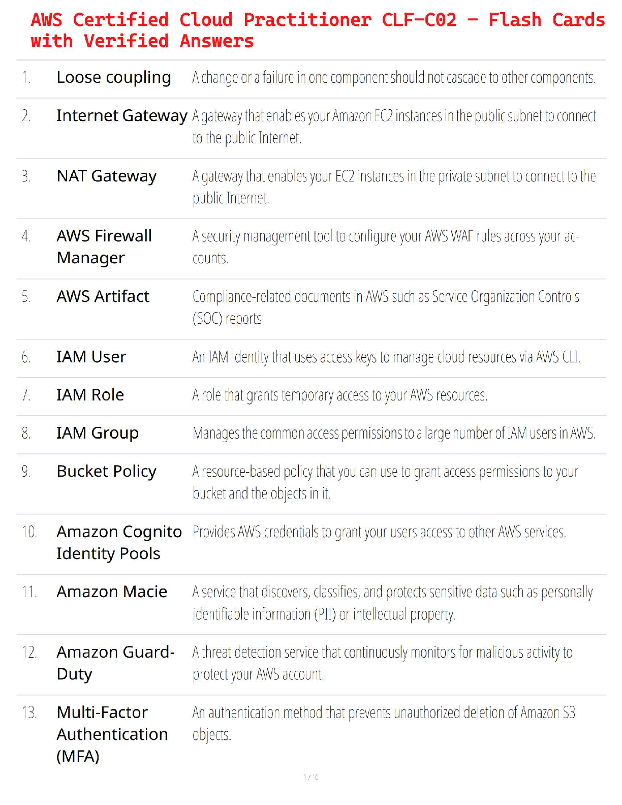Computer Science > QUESTIONS & ANSWERS > AWS Certified Cloud Practitioner CLF-C02 – Flash Cards with Verified Answers (All)