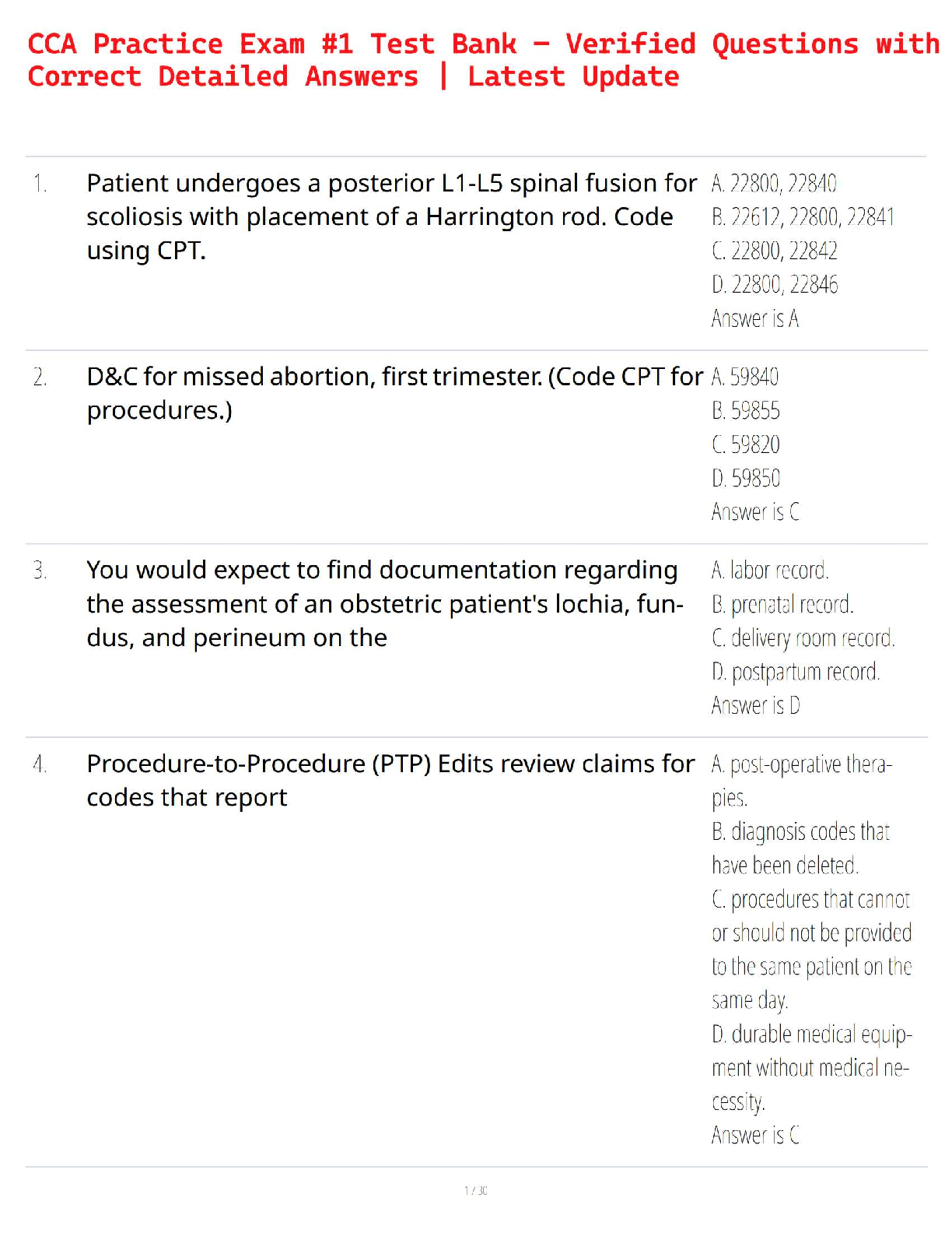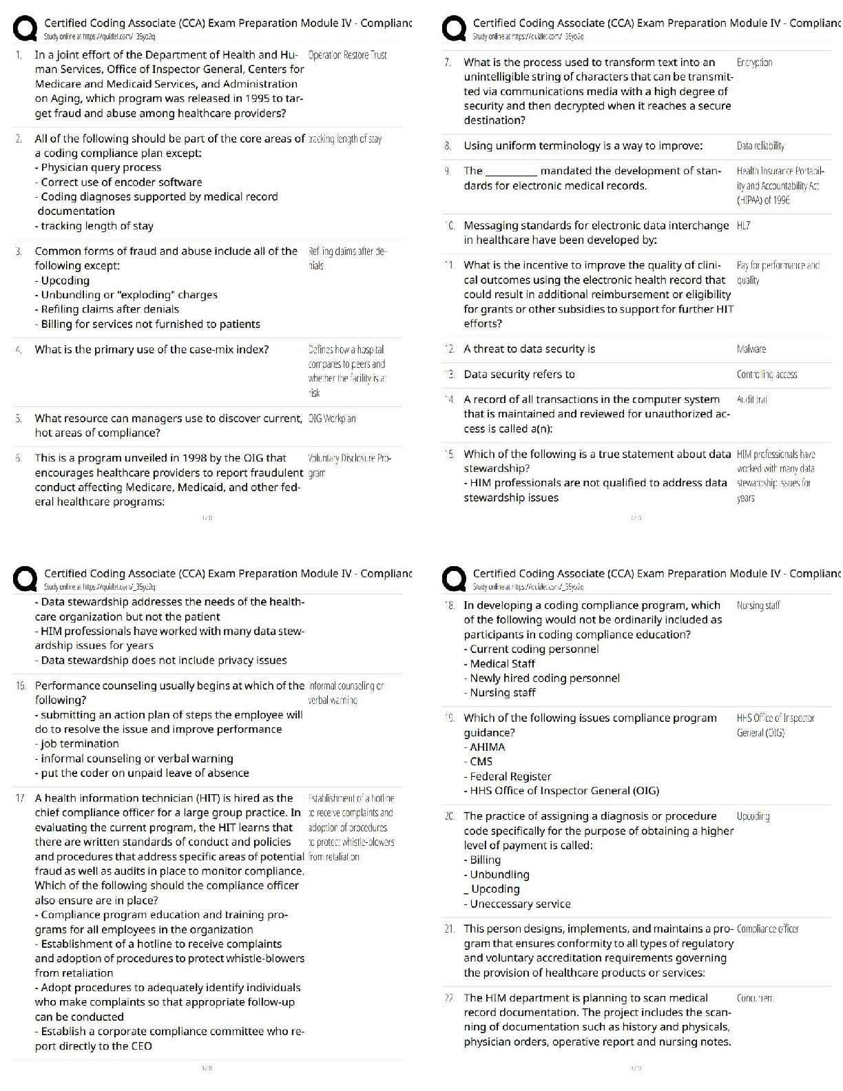 Computer Science > QUESTIONS & ANSWERS > Certified Coding Associate (CCA) Exam Preparation Module IV – Compliant / 2025 Update / Score 100% / Full Study Guide & Test Bank Review (All)