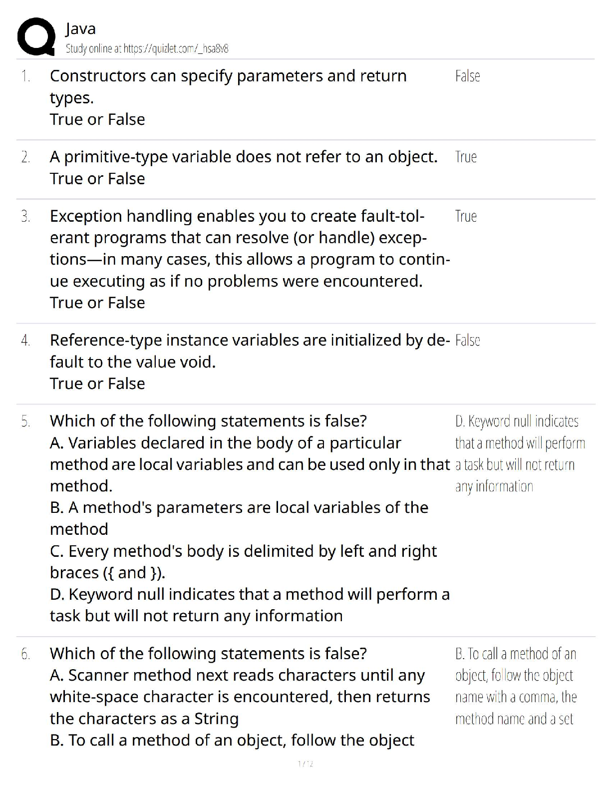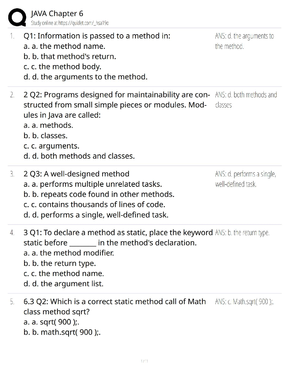 Computer Science > QUESTIONS & ANSWERS > Java Programming Chapter 6 / Methods Practice Test 2025 / Study Guide with Questions & Answers (All)